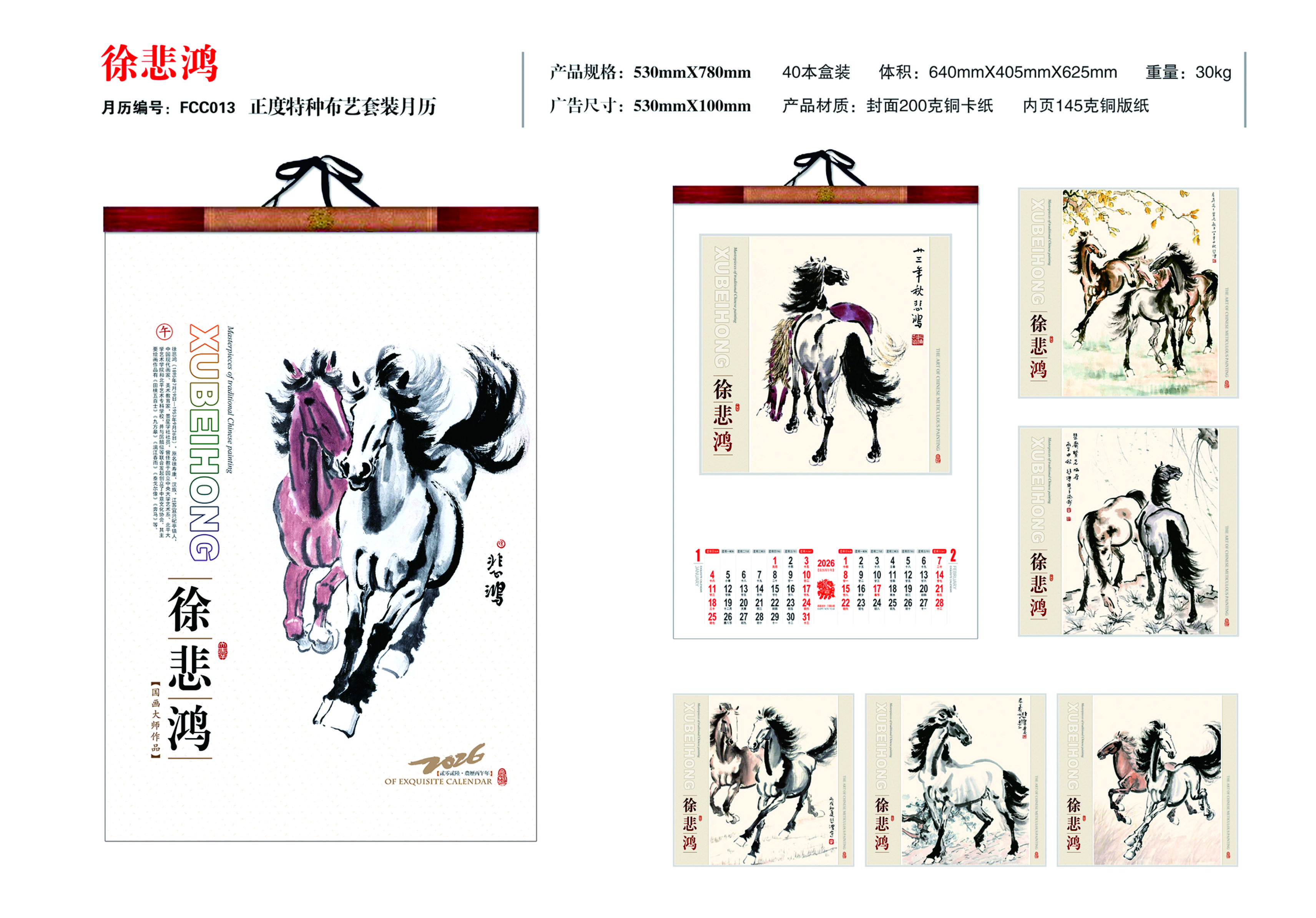 正度特種布藝套裝月歷-徐悲鴻