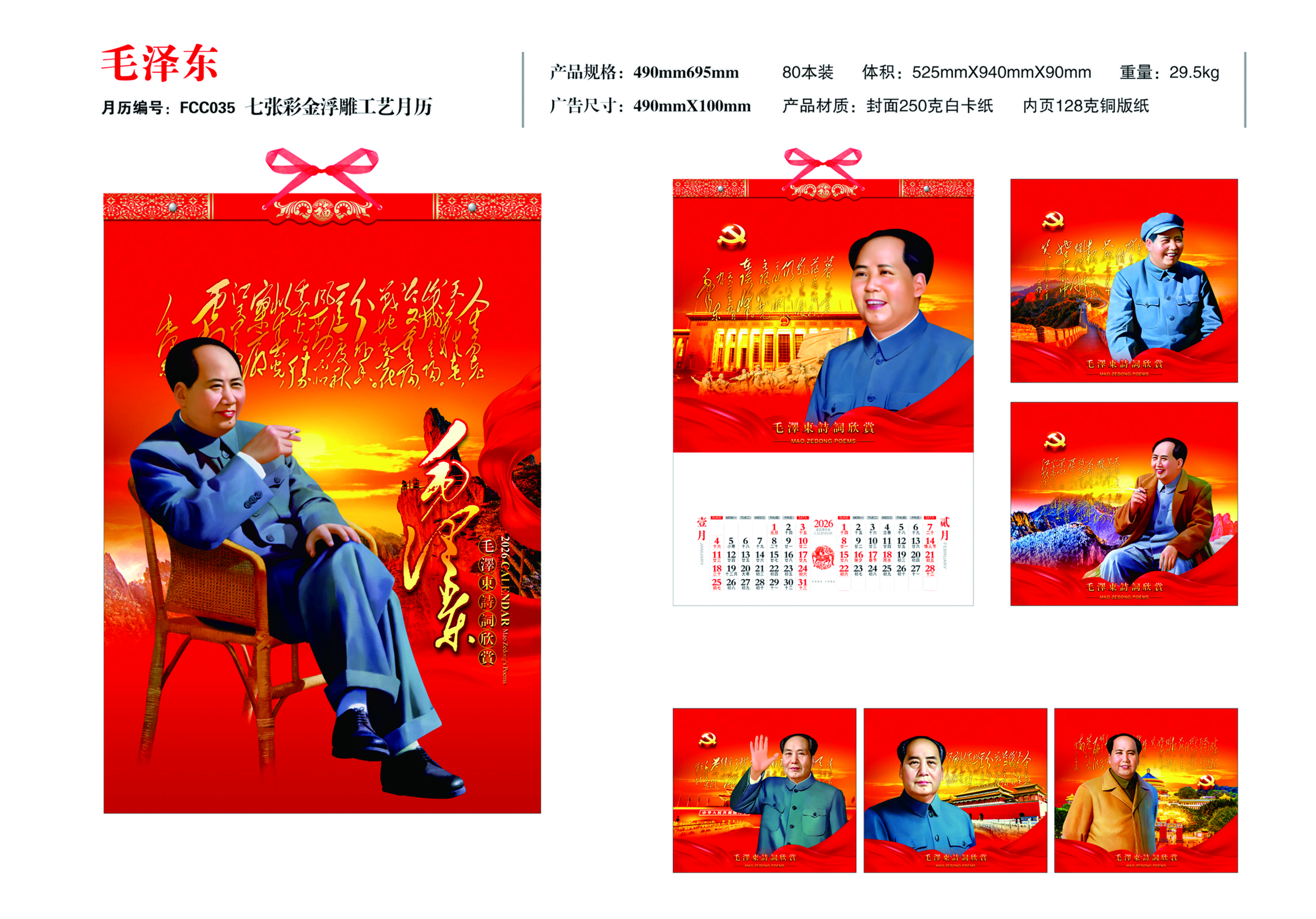 七張彩金浮雕工藝月歷-毛澤東