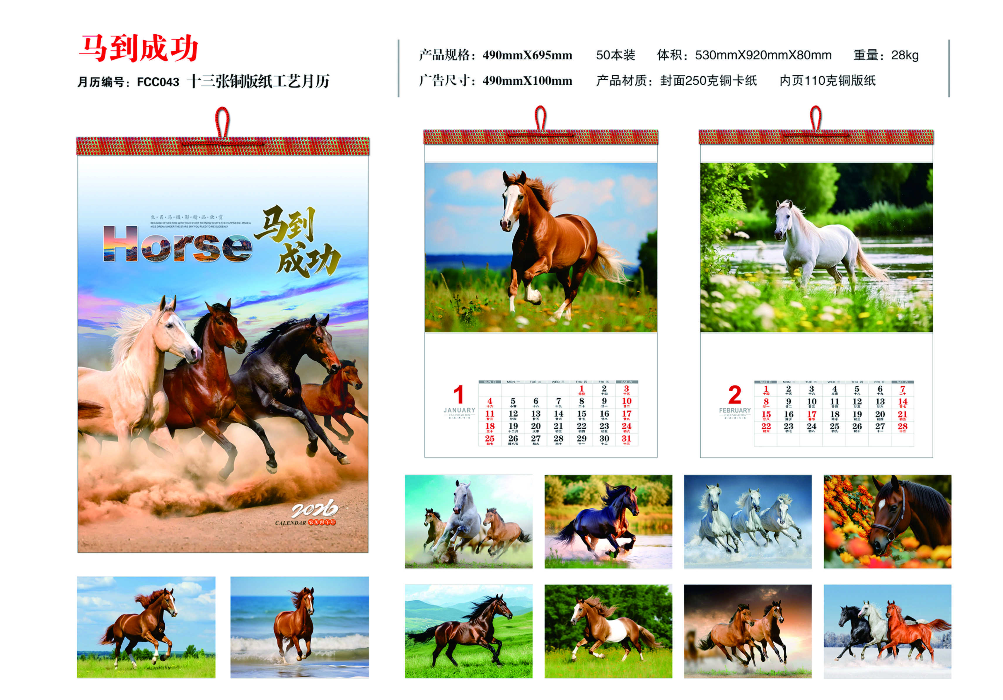 十三張銅版紙工藝月歷- 馬到成功