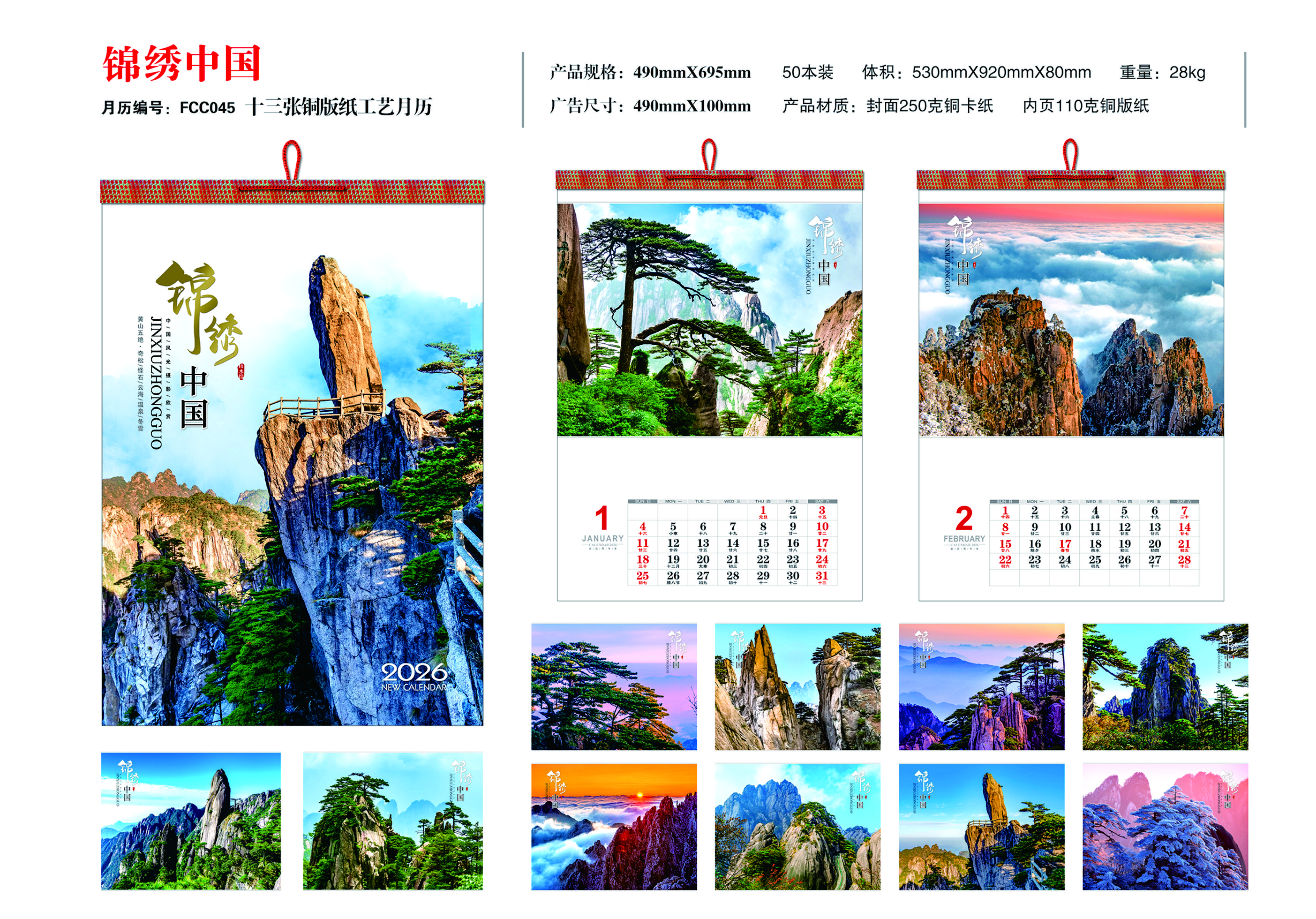 十三張銅版紙工藝月歷- 錦繡中國(guó)
