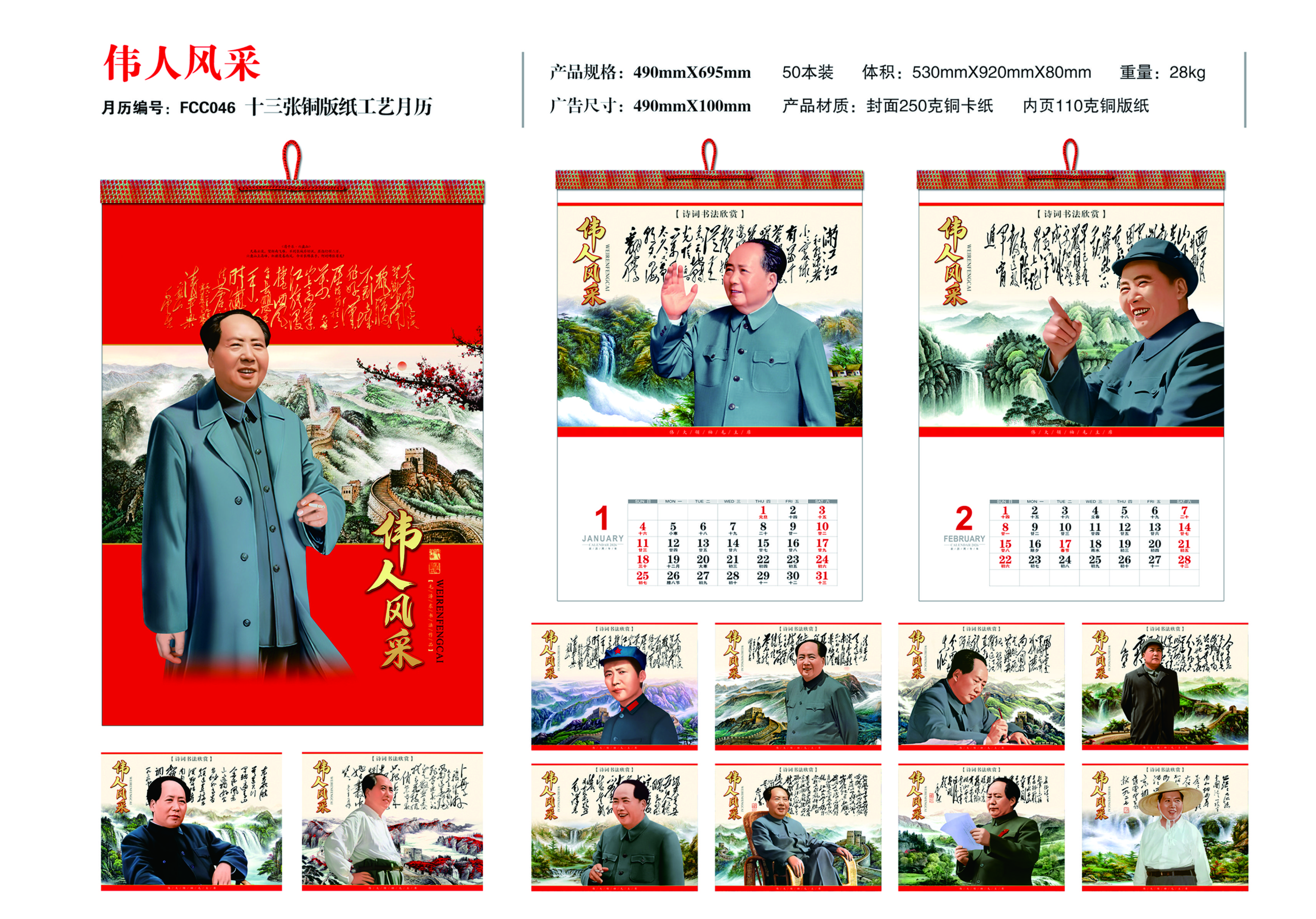 十三張銅版紙工藝月歷- 偉人風(fēng)采