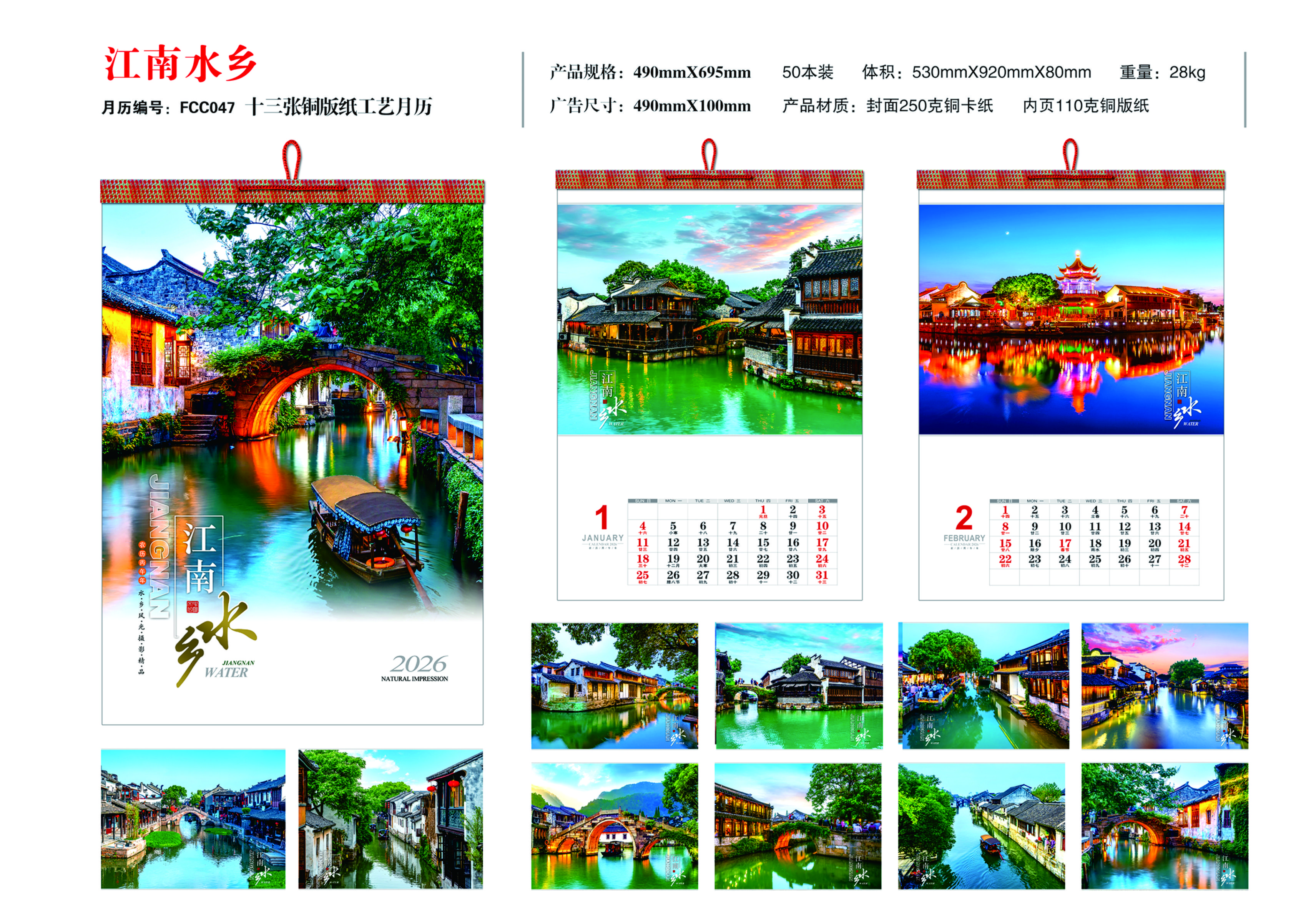 十三張銅版紙工藝月歷- 江南水鄉(xiāng)