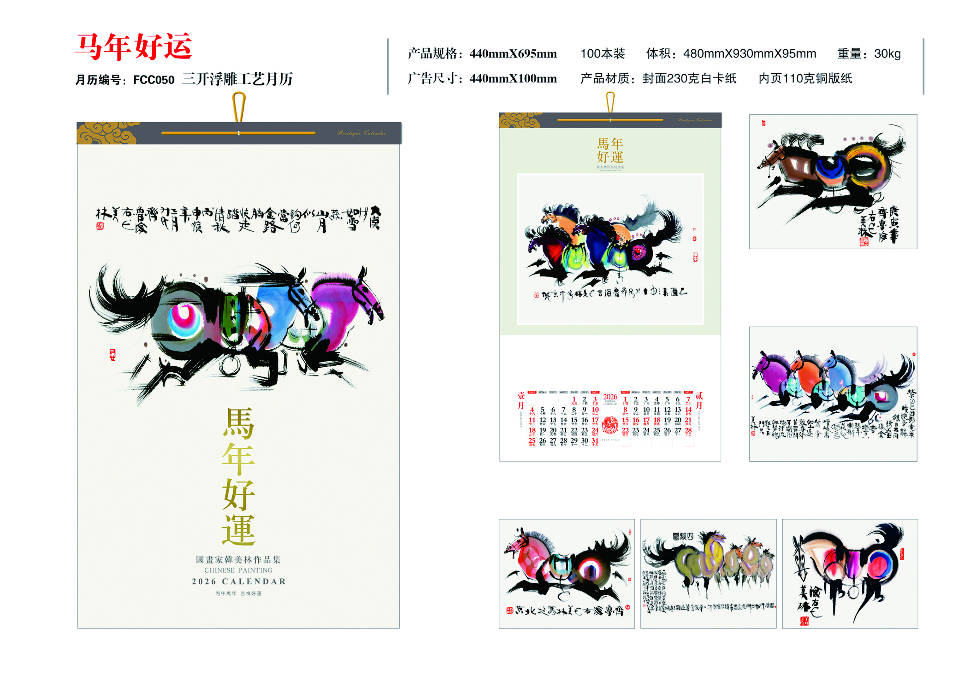 三開浮雕布紋工藝月歷-馬年好運