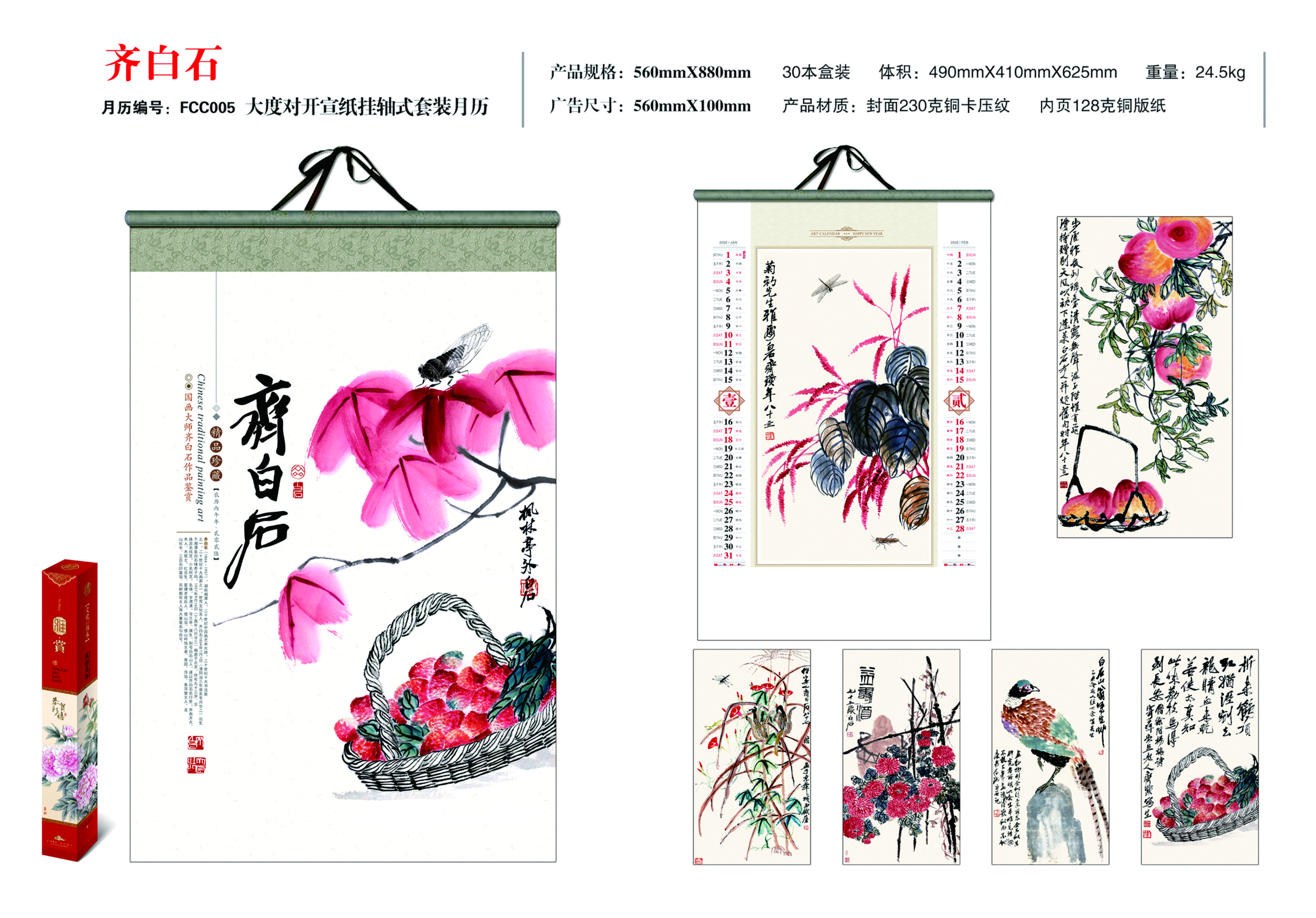 大度對開宣紙掛軸式套裝月歷-齊白石