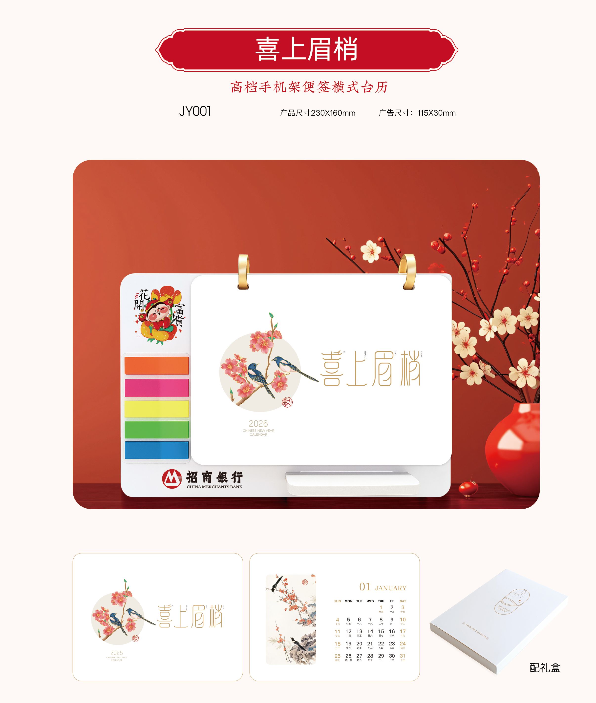 高檔手機架便簽橫式臺歷-喜上眉梢