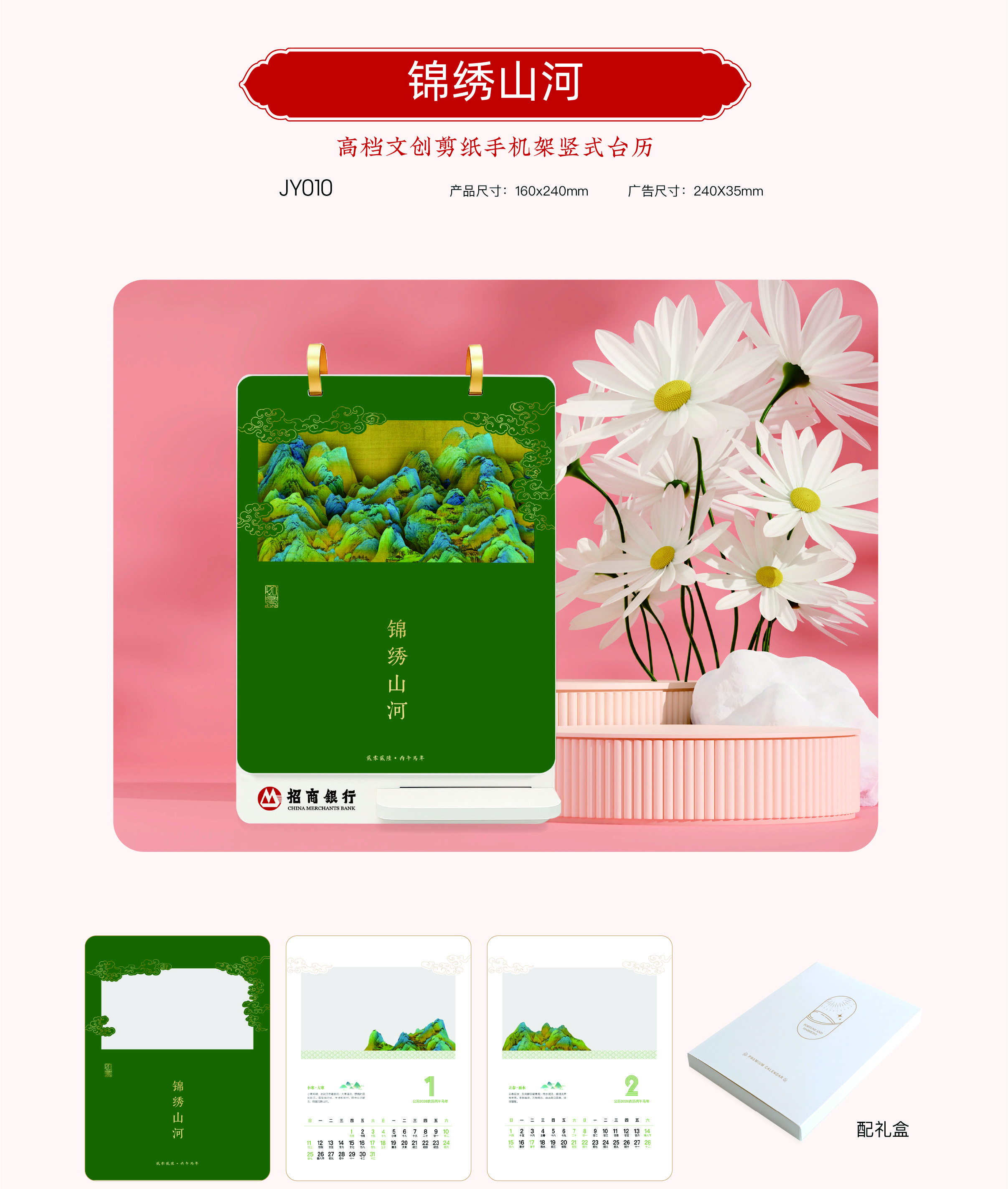 高檔文創(chuàng)剪紙手機(jī)架豎式臺(tái)歷 - 錦繡山河
