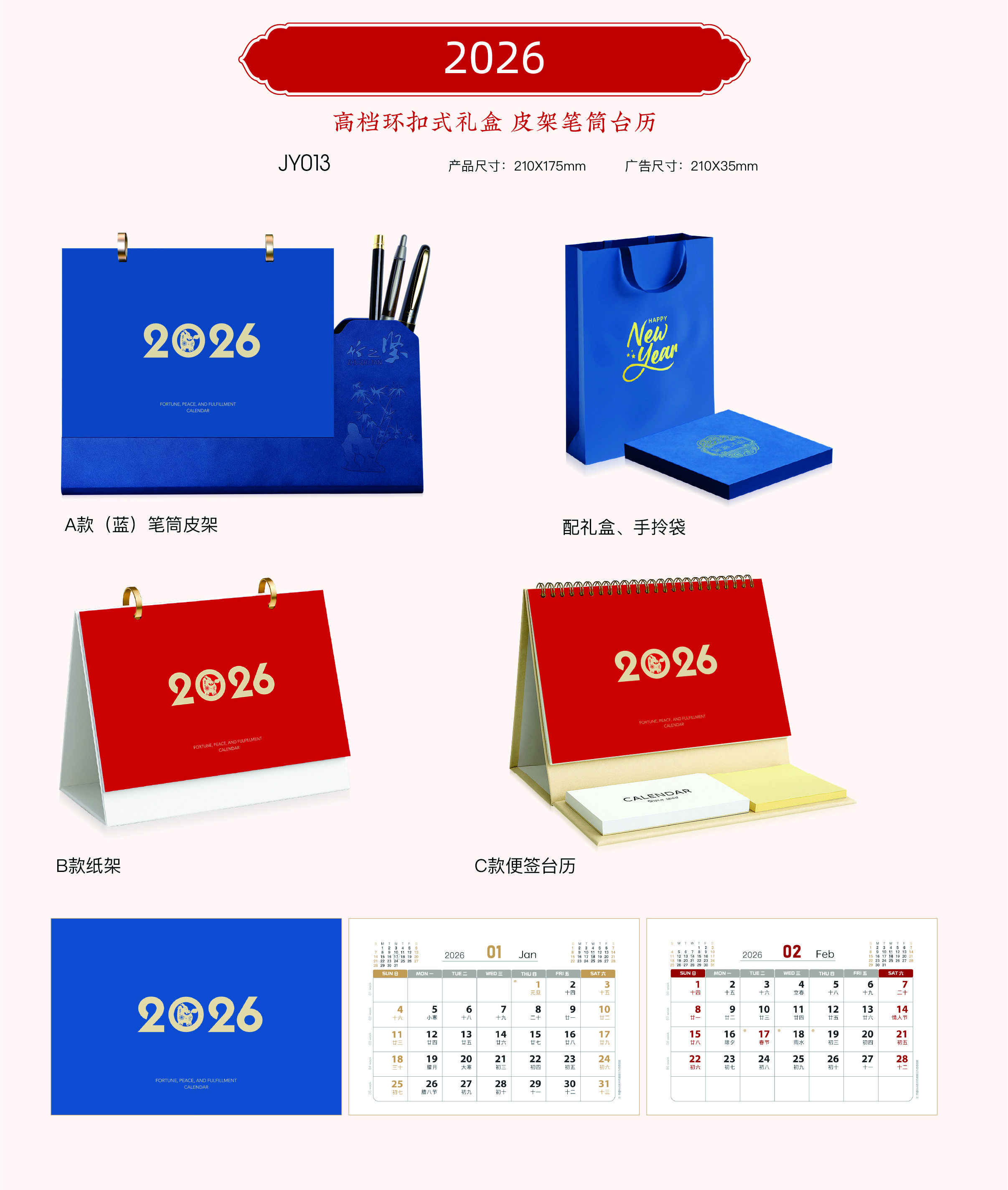高檔環(huán)扣式禮盒17張皮架筆筒臺歷 -2026