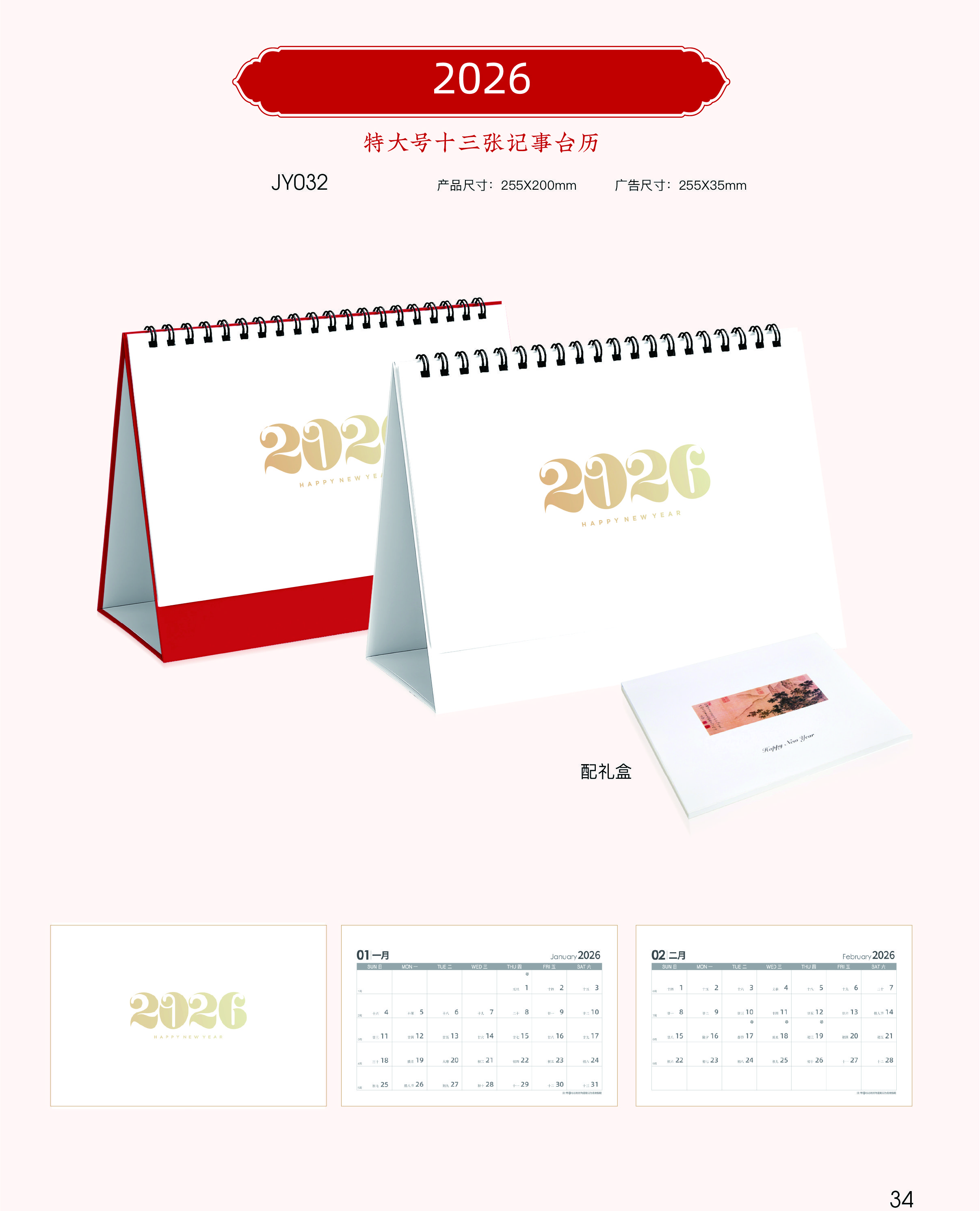 特大號(hào)十三張記事臺(tái)歷 -2026