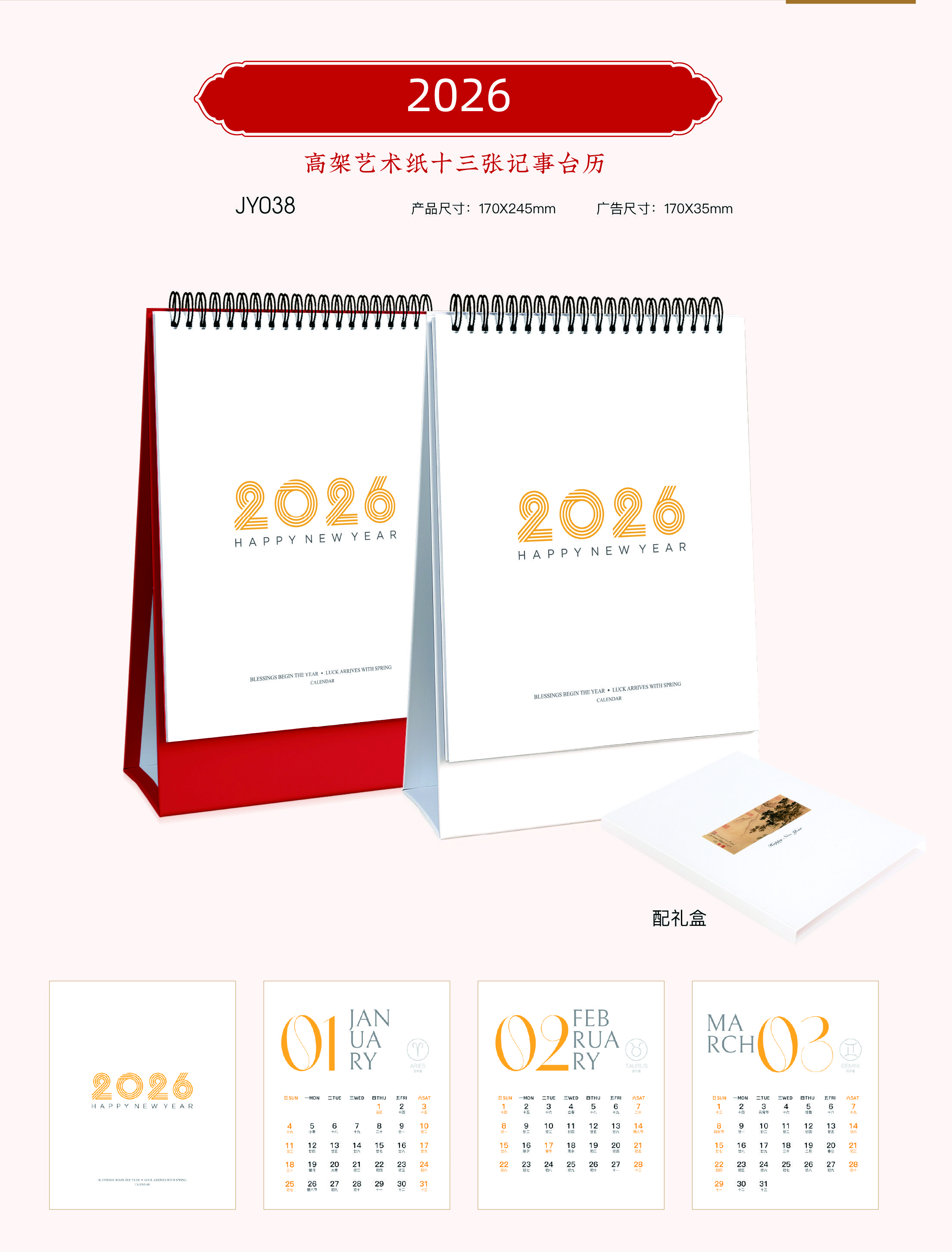高架藝術(shù)紙十三張記事臺(tái)歷 -2026