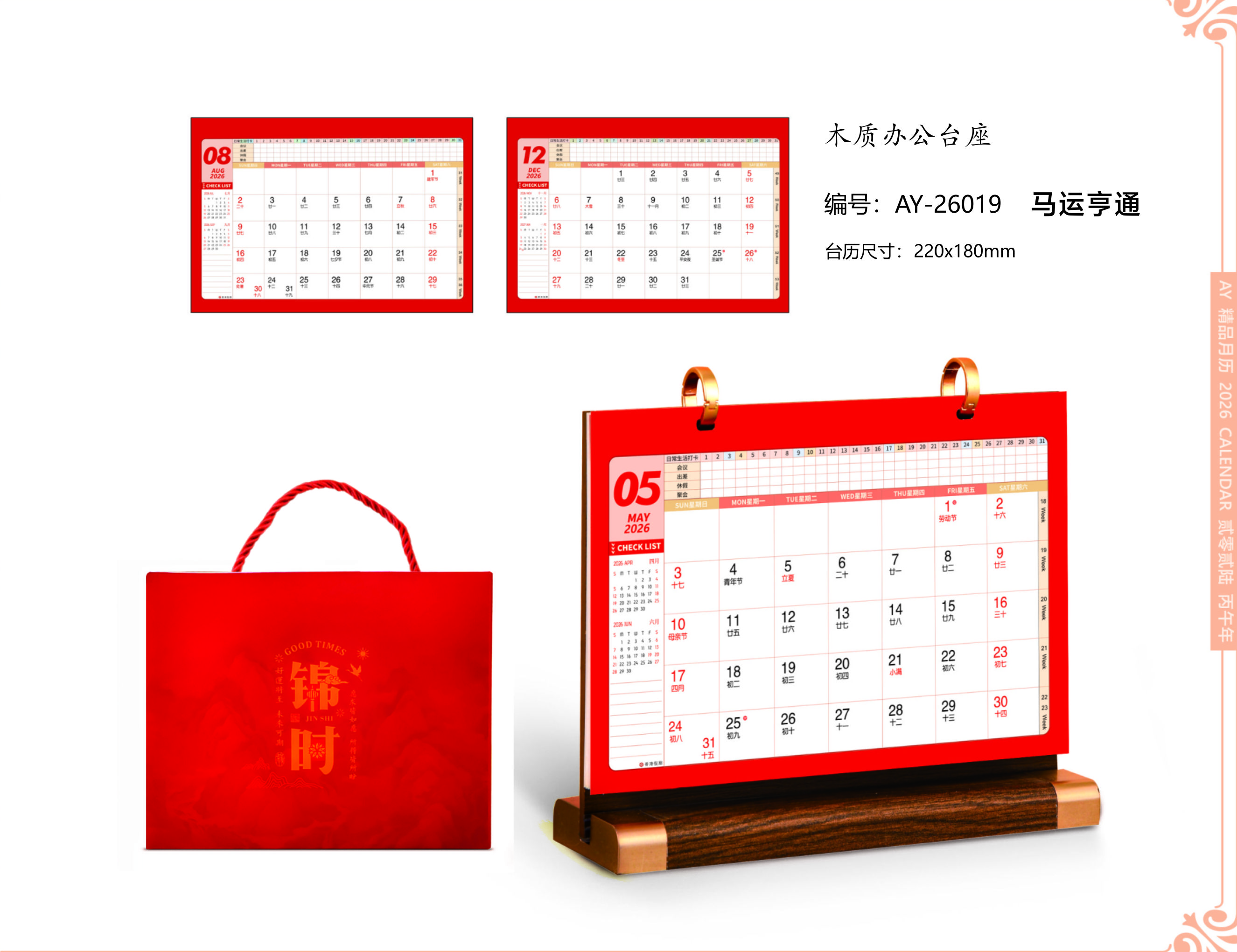 臺(tái)歷尺寸:220x180mm