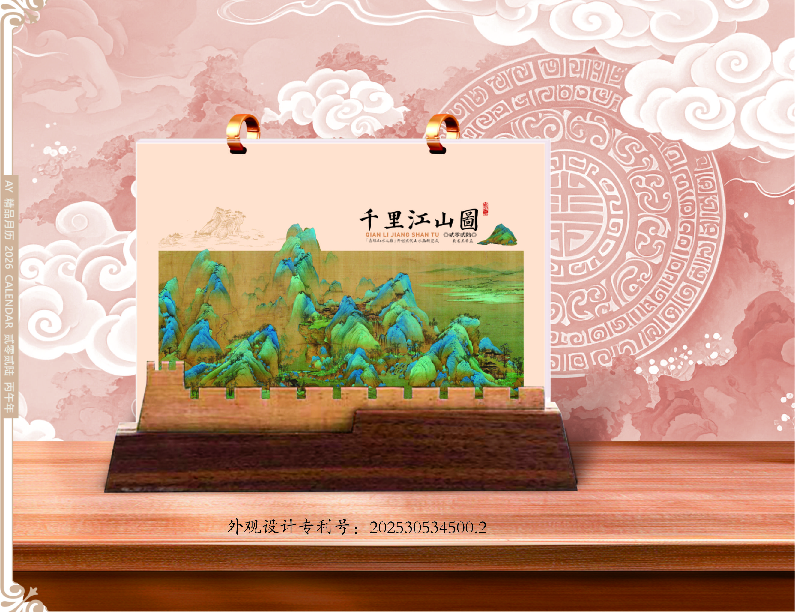 實木創(chuàng)意精美辦公臺座-千里江山圖