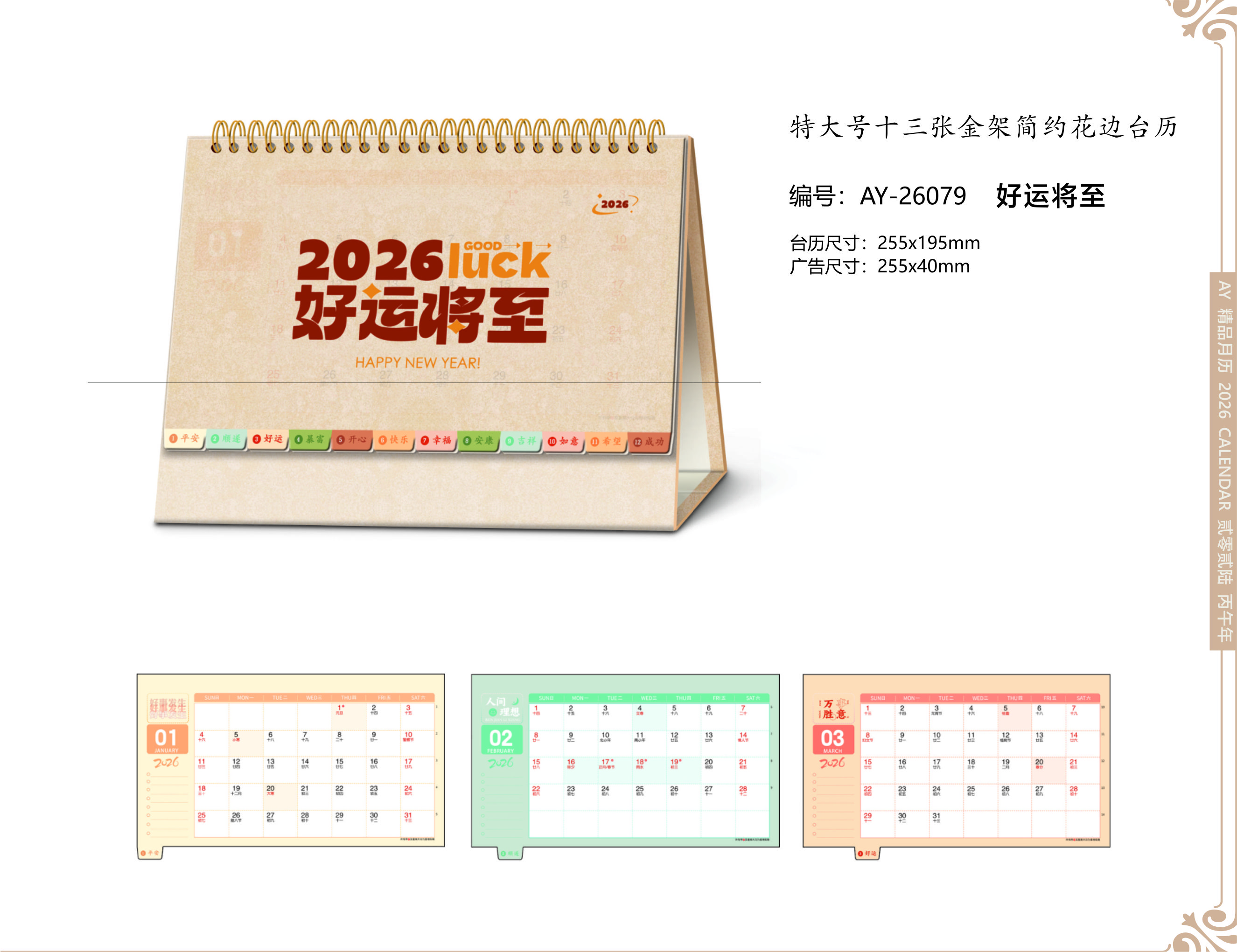 特大號十三張金架簡約花邊臺歷- 好運(yùn)將至