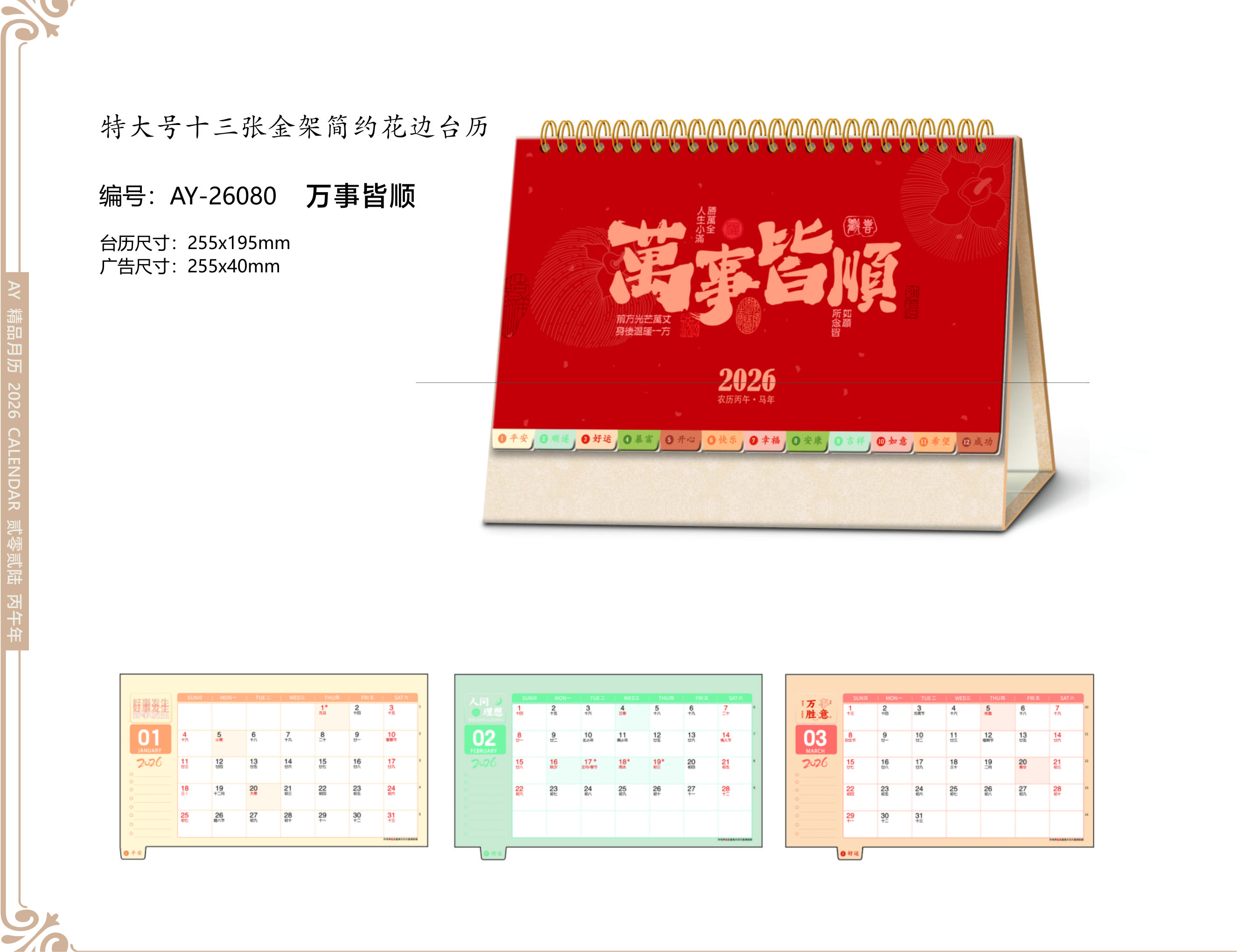 特大號(hào)十三張金架簡(jiǎn)約花邊臺(tái)歷- 萬(wàn)事皆順
