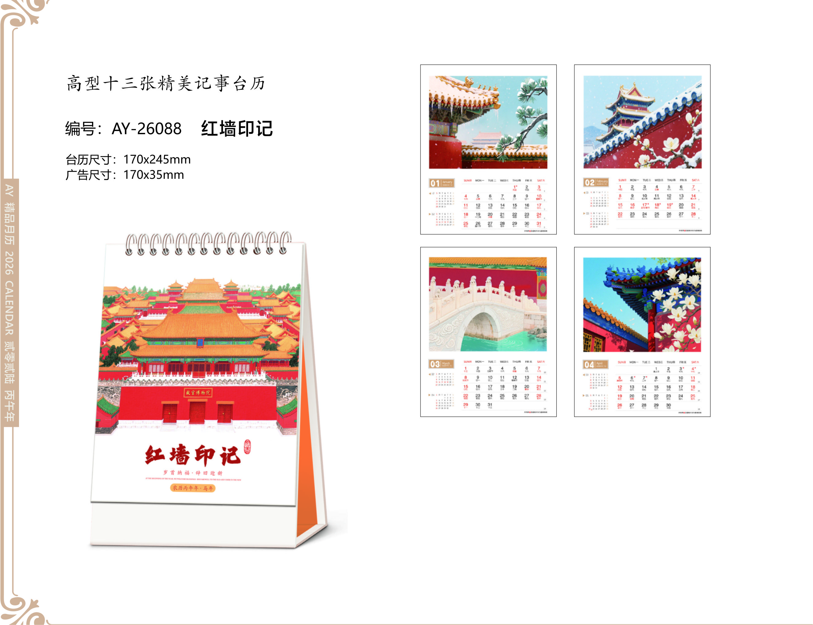 高型十三張精美記事臺(tái)歷- 紅墻印記