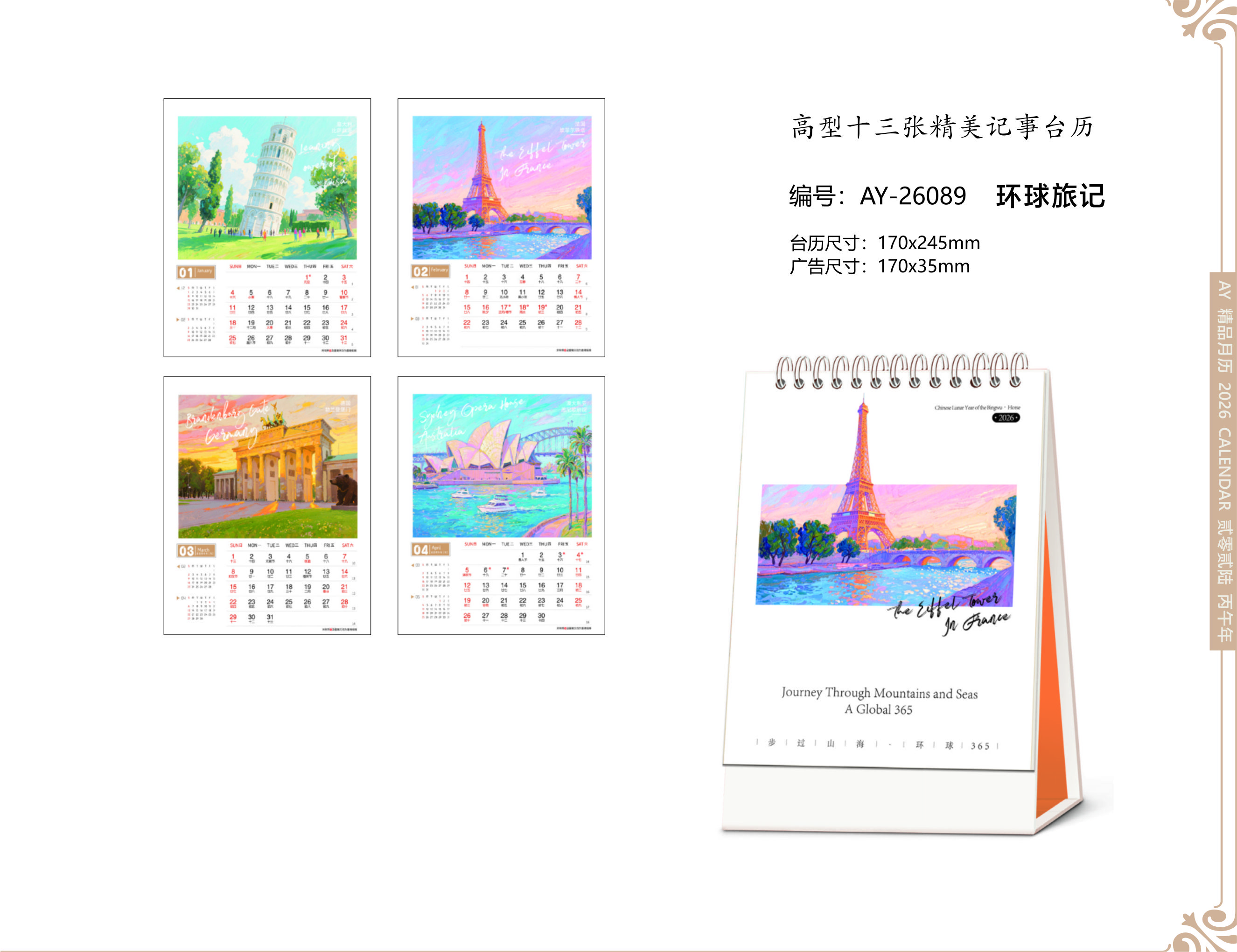高型十三張精美記事臺(tái)歷- 環(huán)球旅記