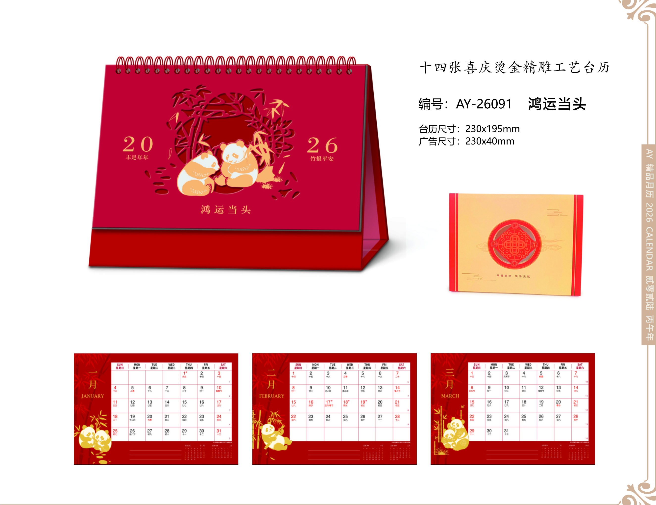 十四張喜慶燙金精雕工藝臺歷- 鴻運當頭
