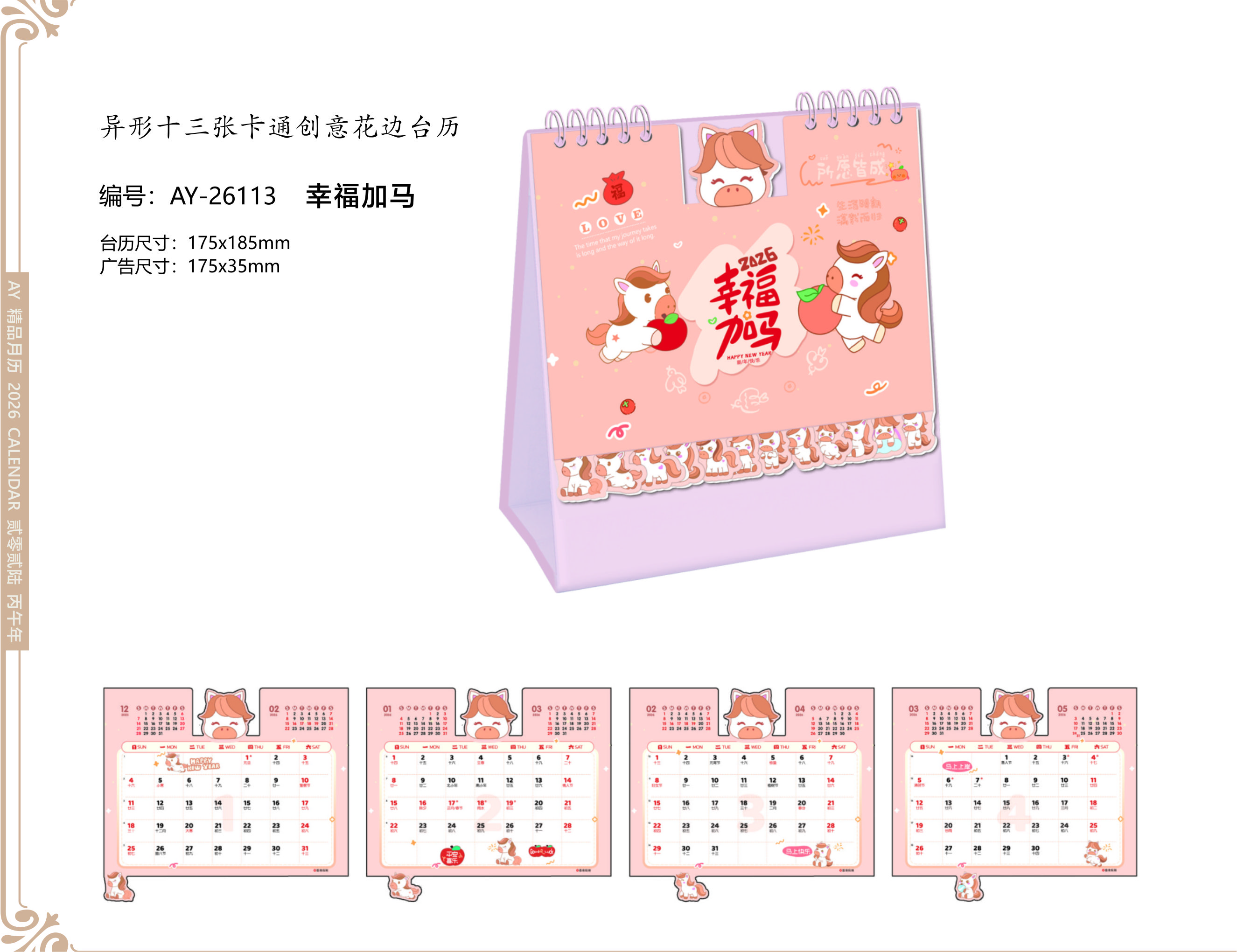 異形十三張卡通創(chuàng)意花邊臺(tái)歷- 幸福加馬