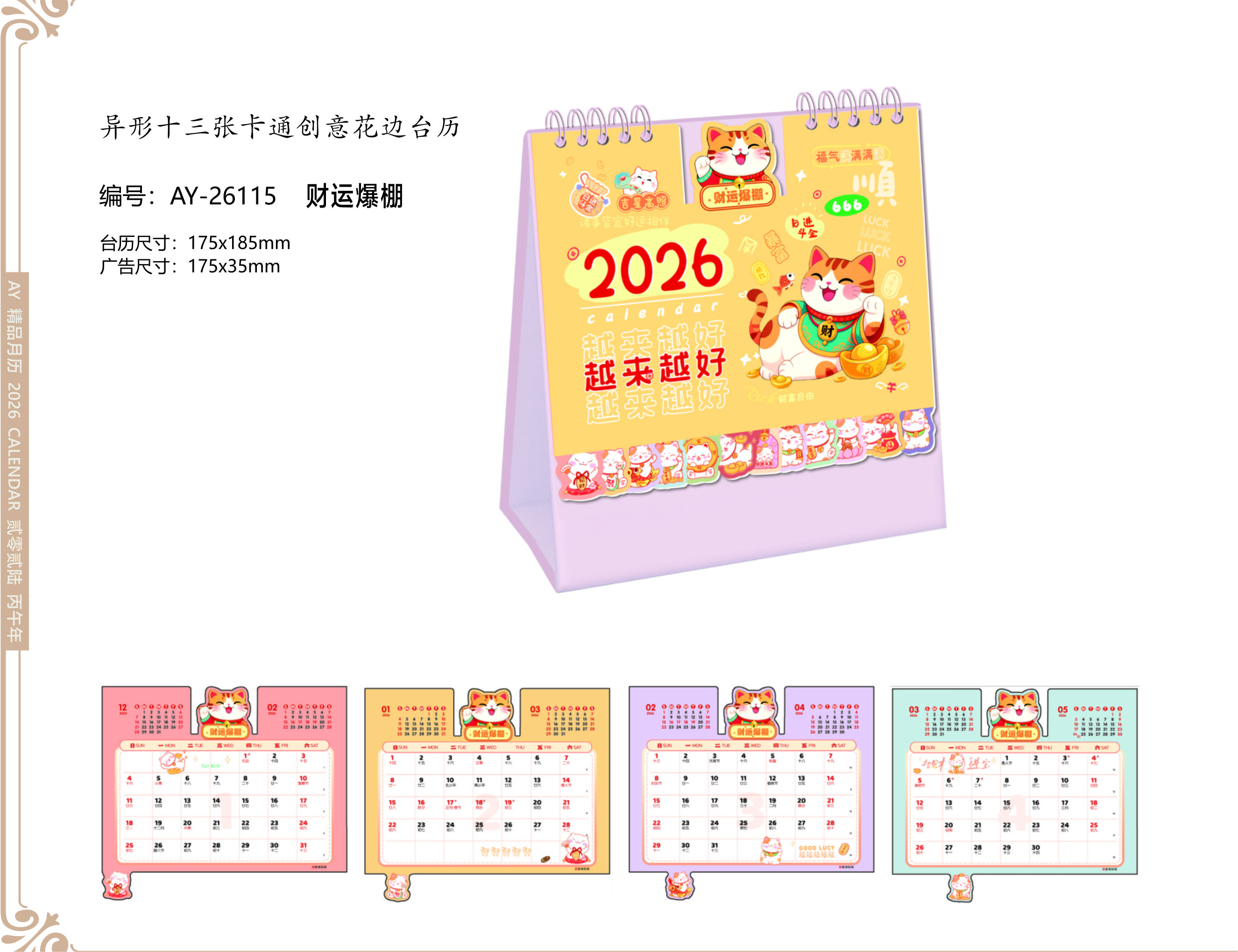 異形十三張卡通創(chuàng)意花邊臺歷- 財(cái)運(yùn)爆棚