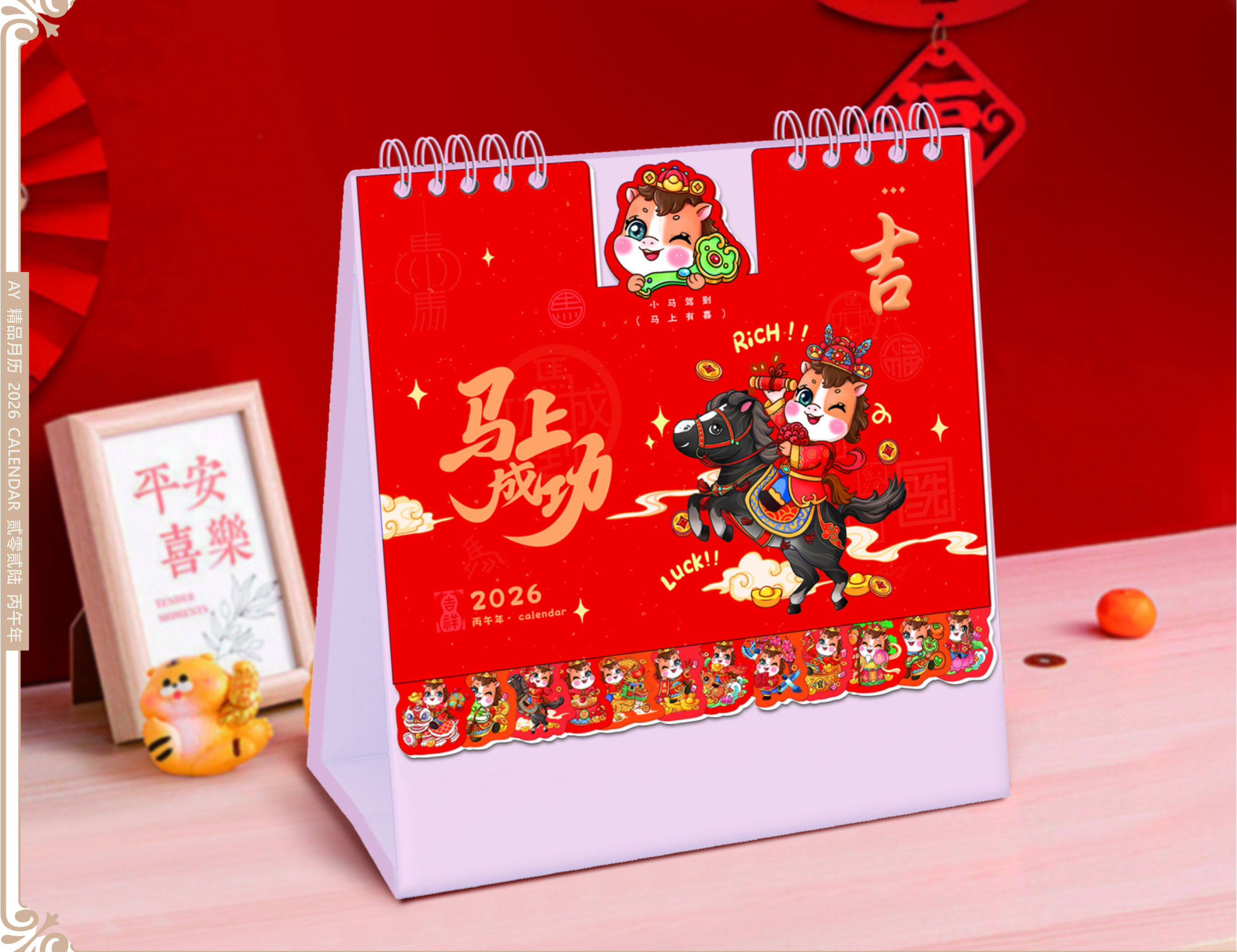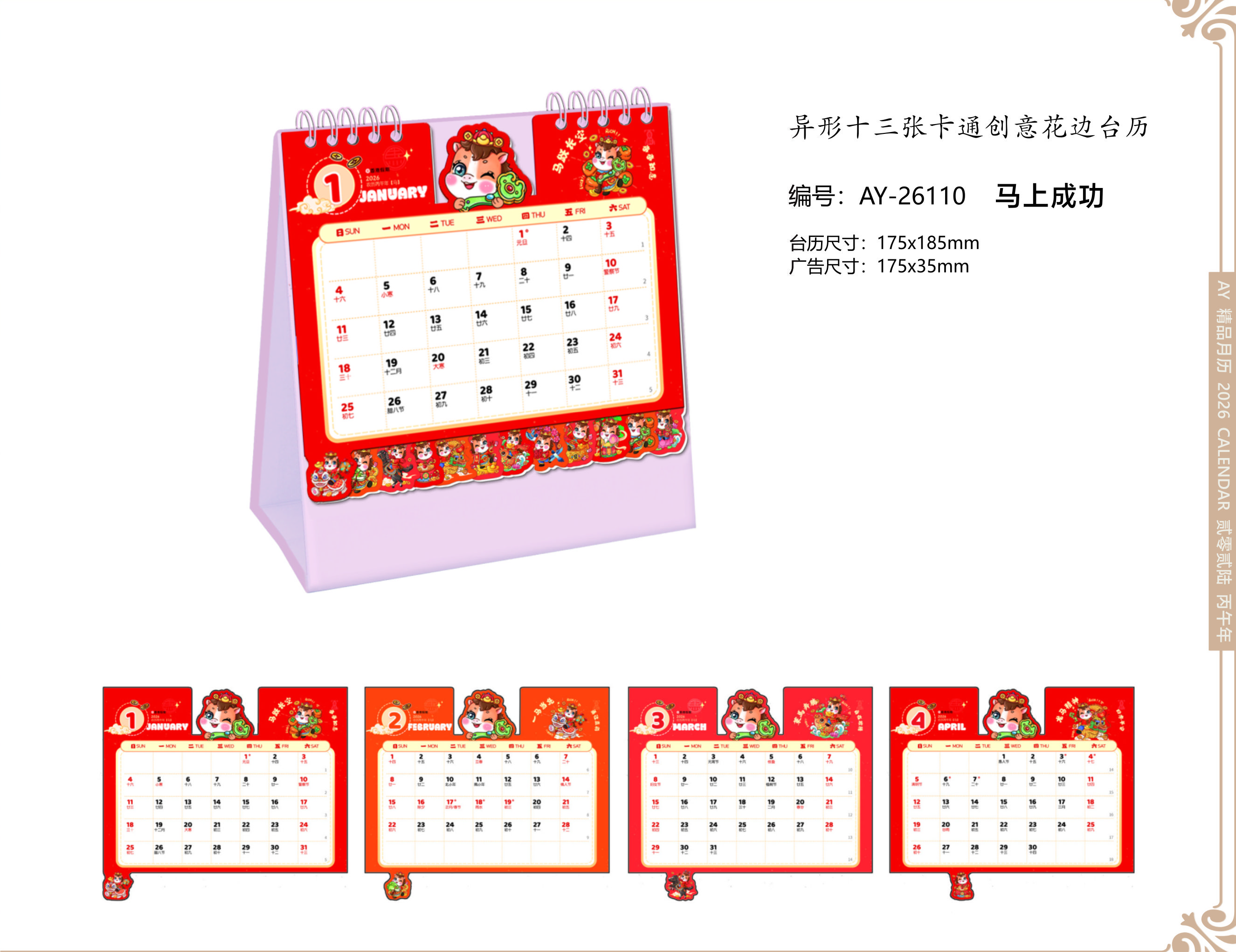 異形十三張卡通創(chuàng)意花邊臺歷- 馬上成功