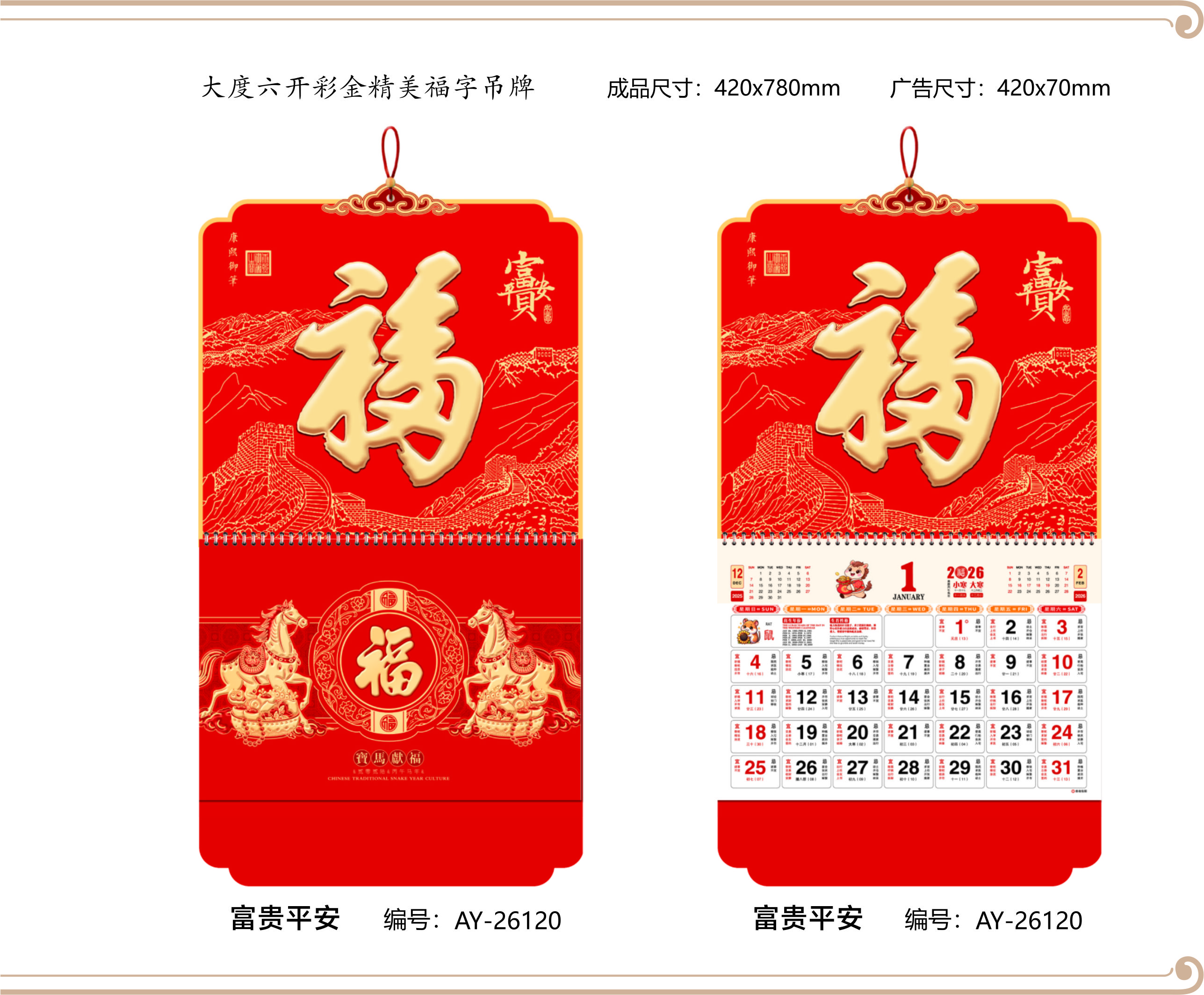 大度六開彩金精美福字吊牌-富貴平安