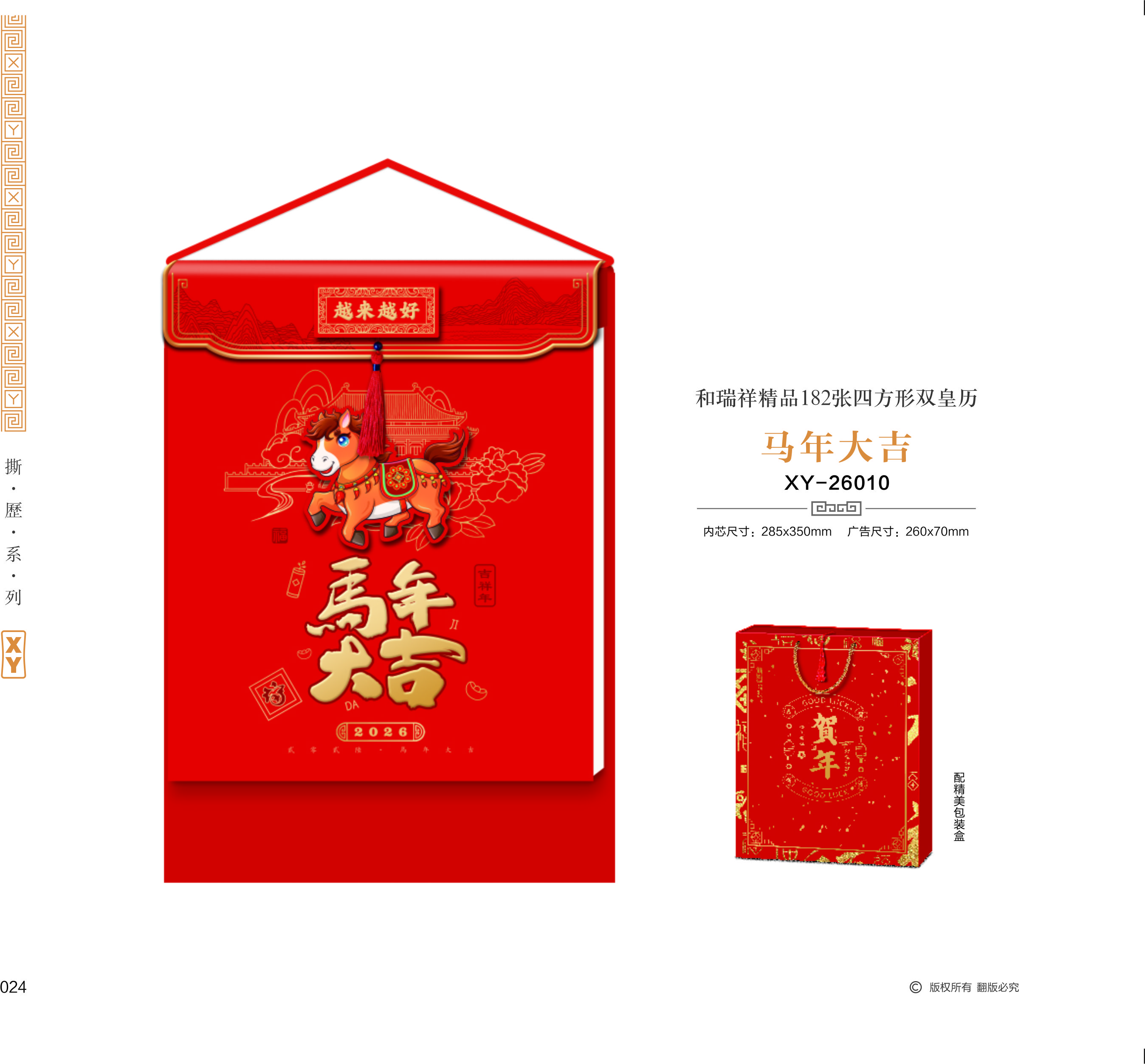 和瑞祥精品182張四方形雙皇歷-馬年大吉