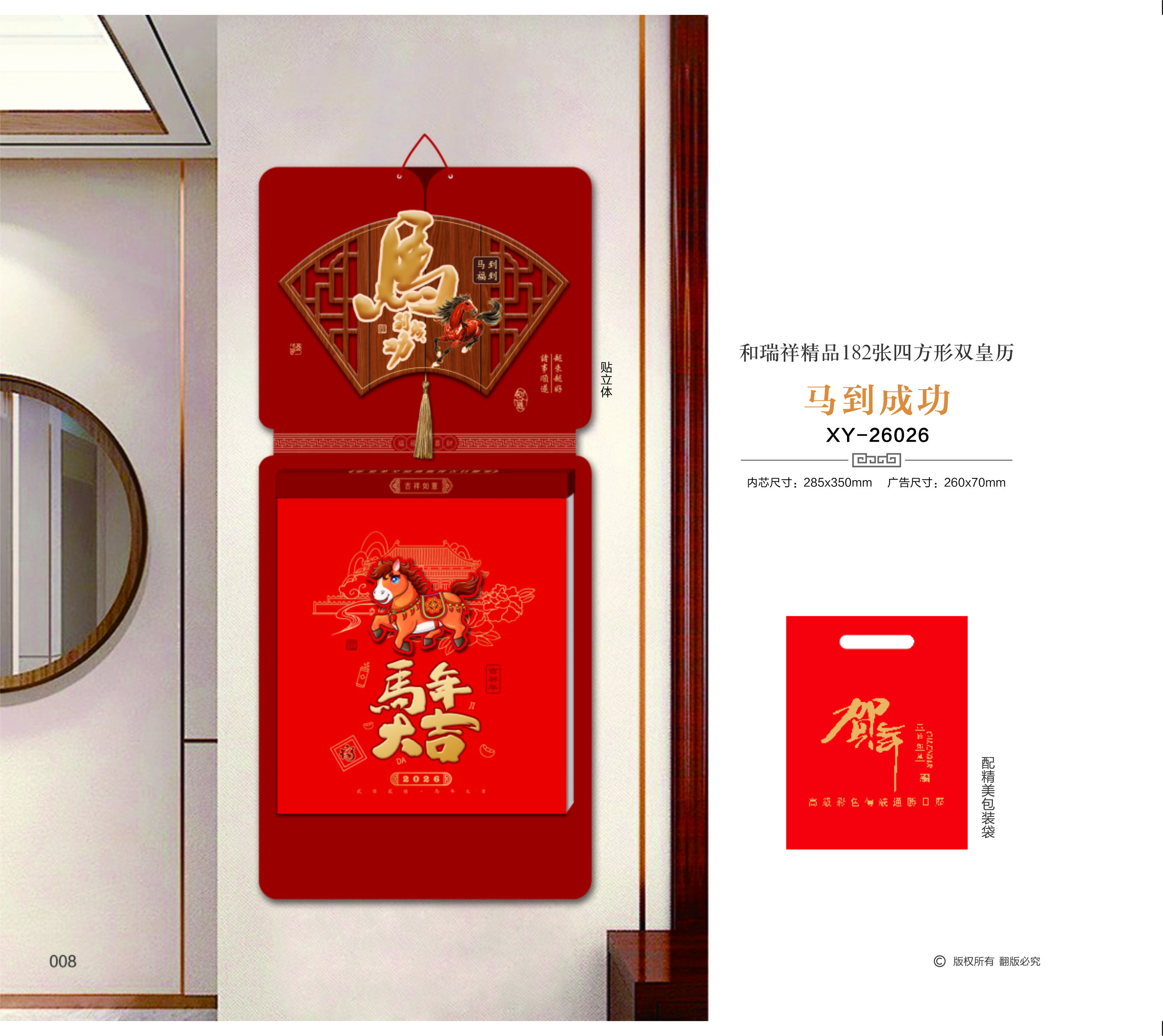 和瑞祥精品182張四方形雙皇歷-馬到成功