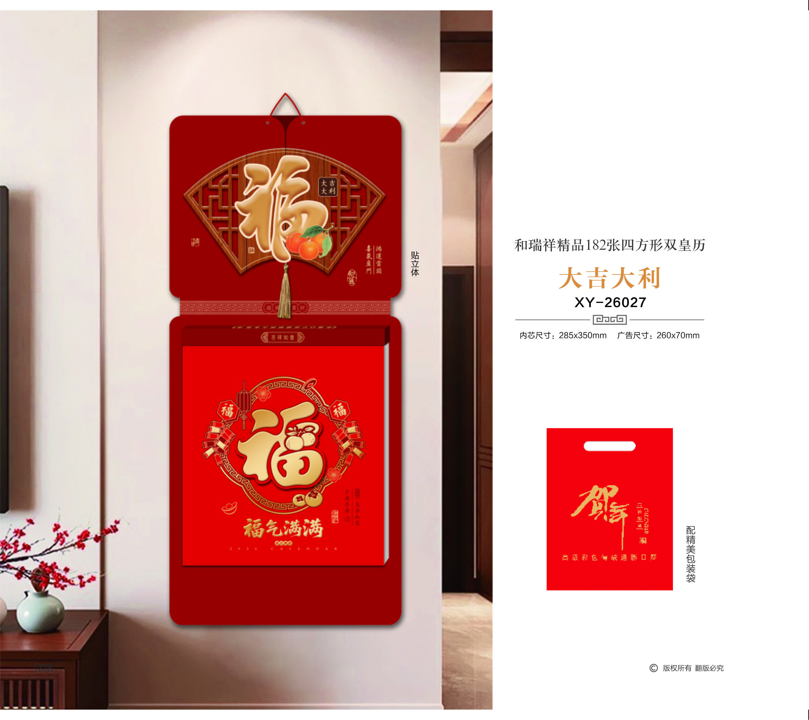和瑞祥精品182張四方形雙皇歷-大吉大利
