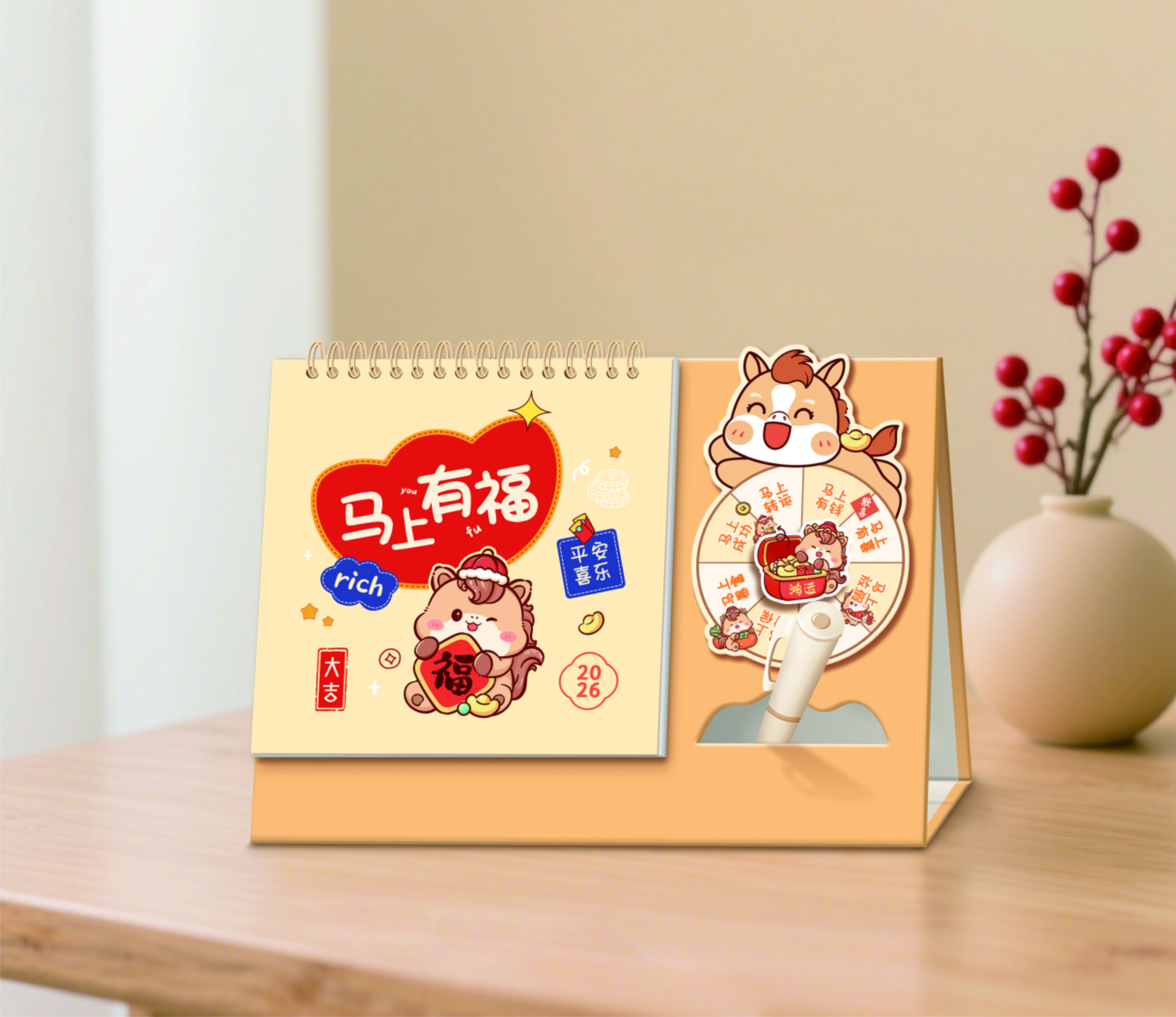 精品創(chuàng)意轉(zhuǎn)盤多功能臺歷-馬上有福