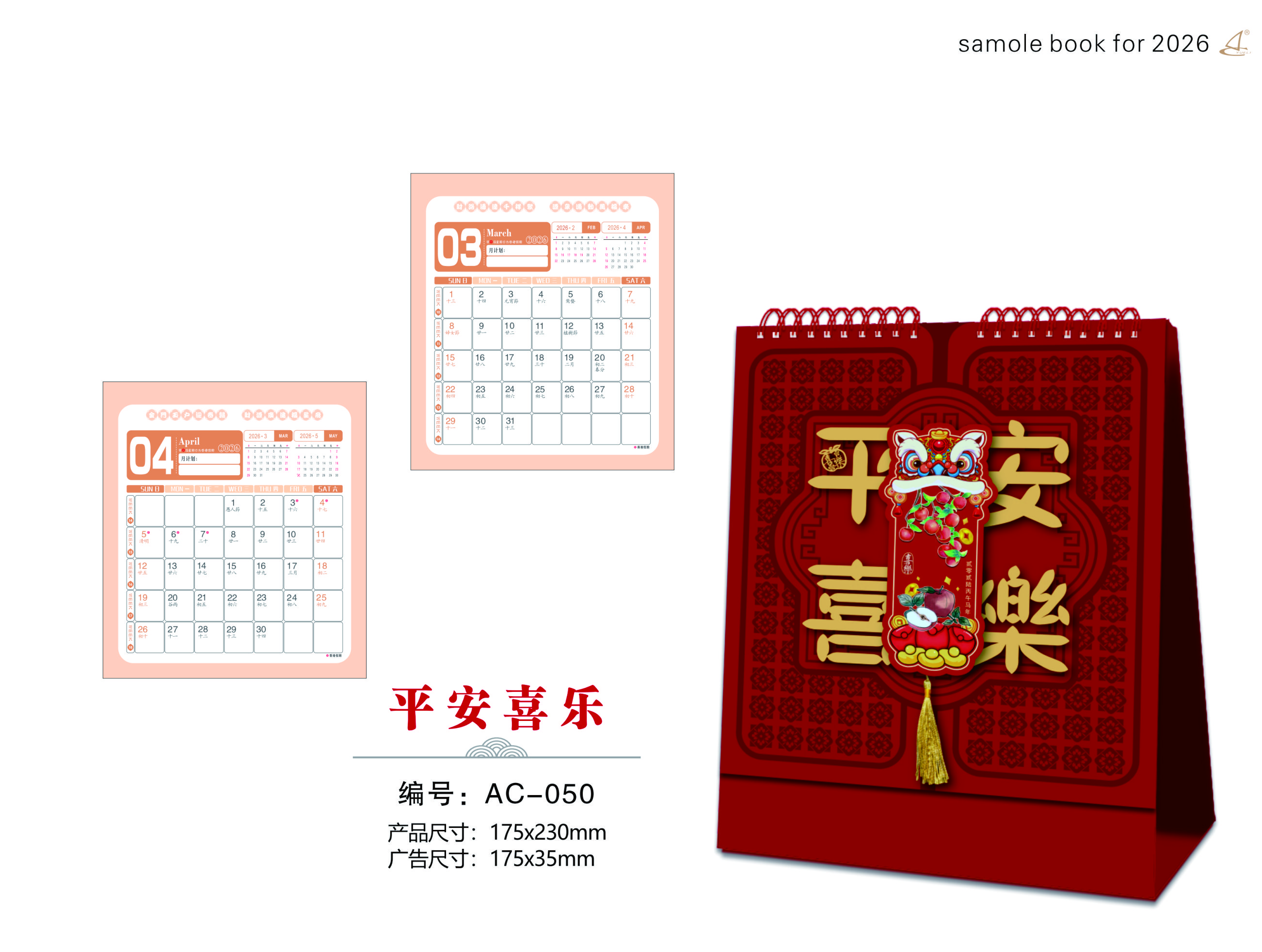 高架觸感暗紅立體浮雕燙雙色金工藝臺歷-平安喜樂