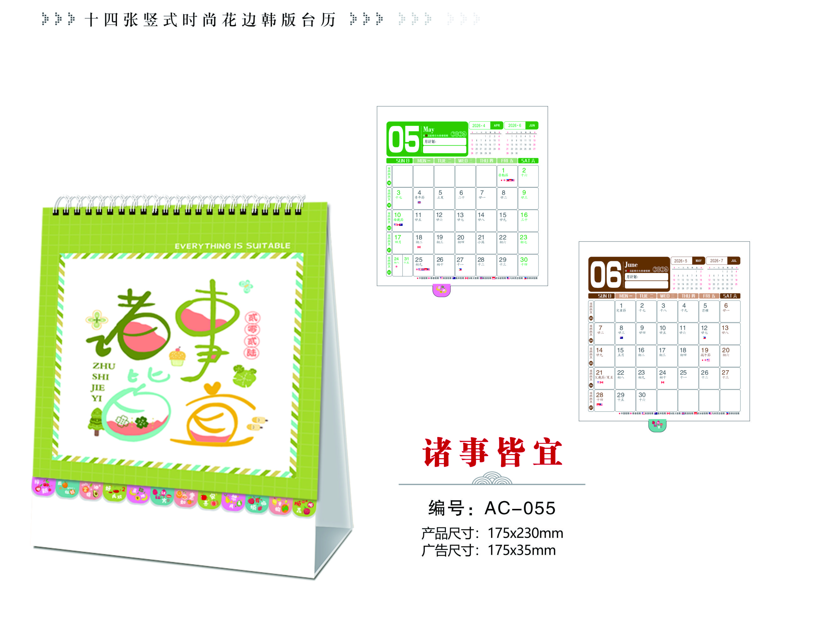 十四張豎式時(shí)尚花邊韓版臺(tái)歷-諸事皆宜