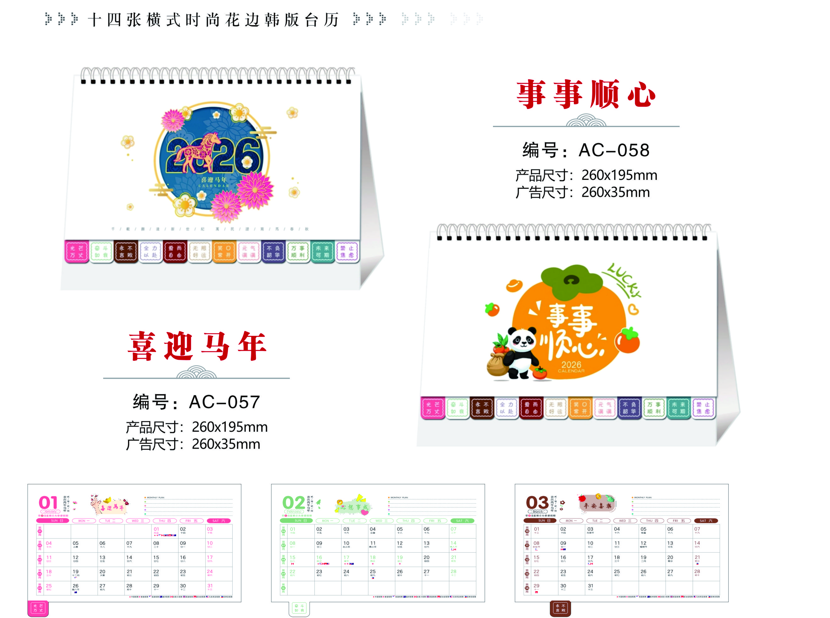 十四張橫式時尚花邊韓版臺歷-喜迎馬年
