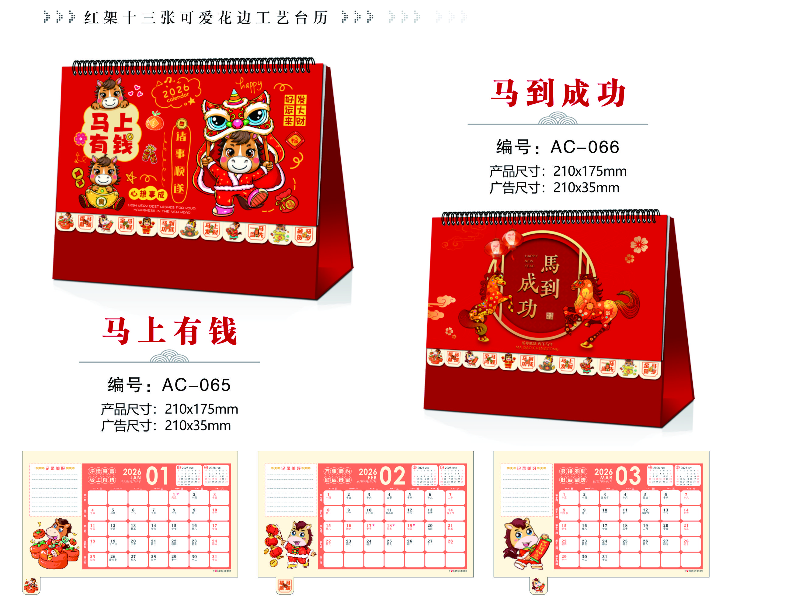 紅架十三張可愛花邊工藝臺歷-馬上有錢