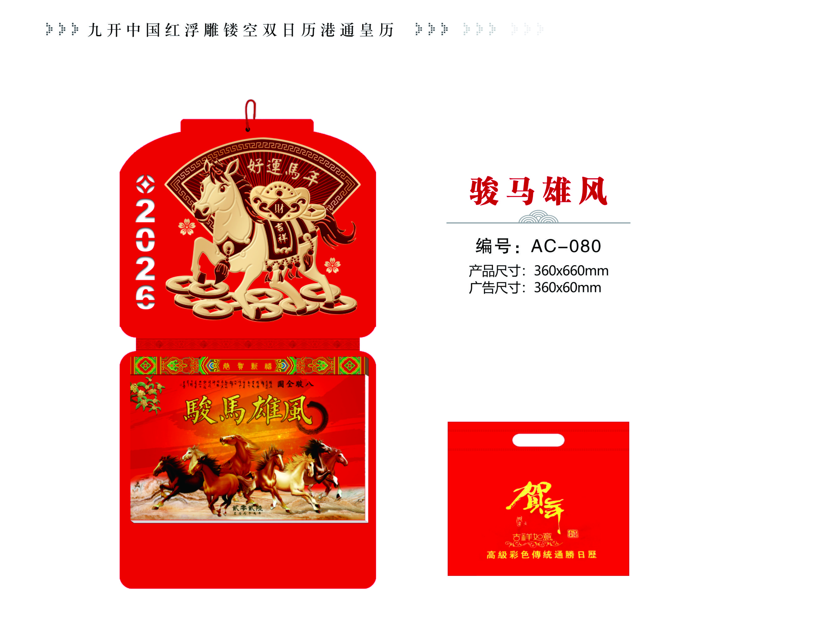 九開(kāi)中國(guó)紅浮雕鏤空雙日歷港通皇歷-駿馬雄風(fēng)