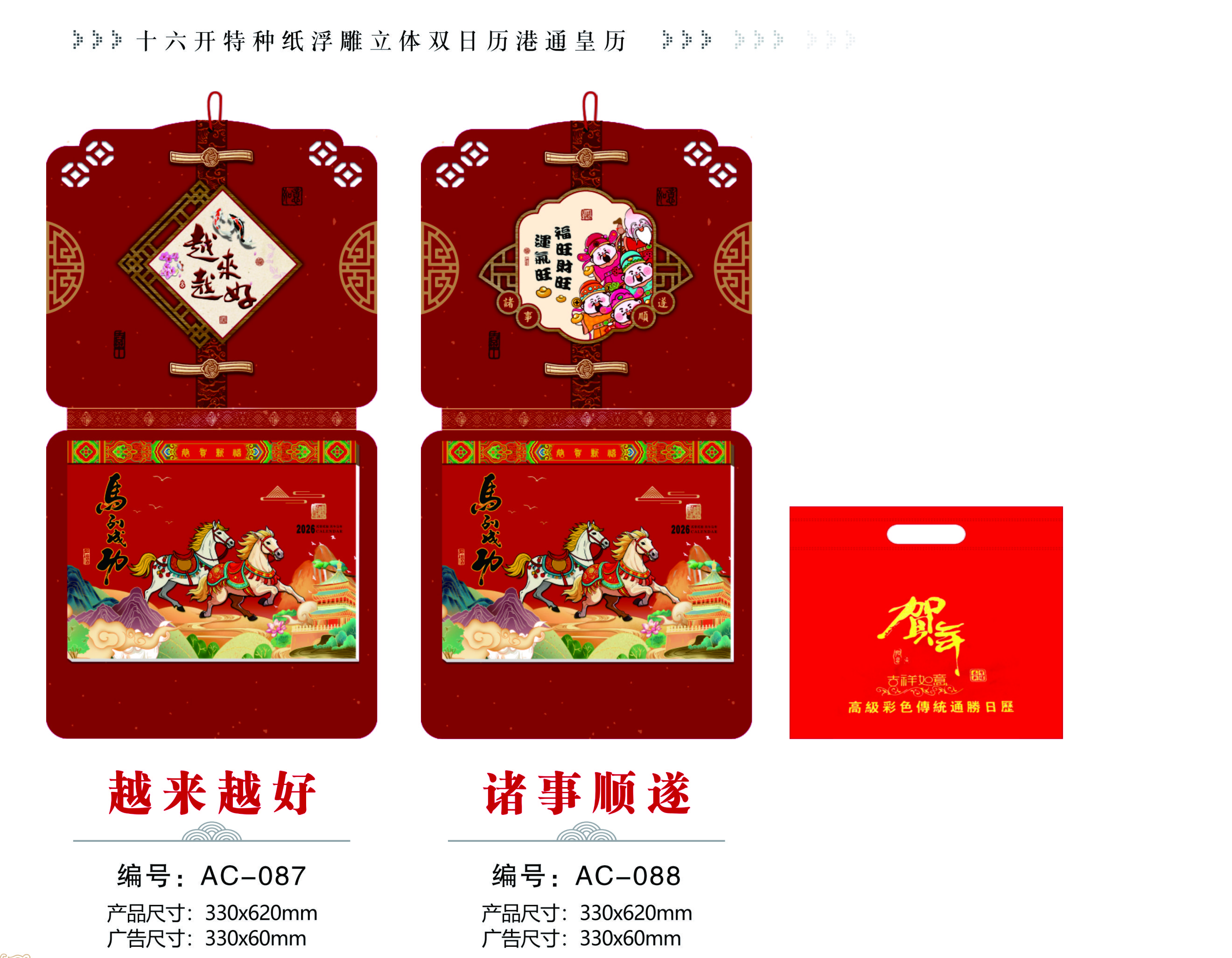 十六開(kāi)特種紙浮雕立體雙日歷港通皇歷-越來(lái)越好