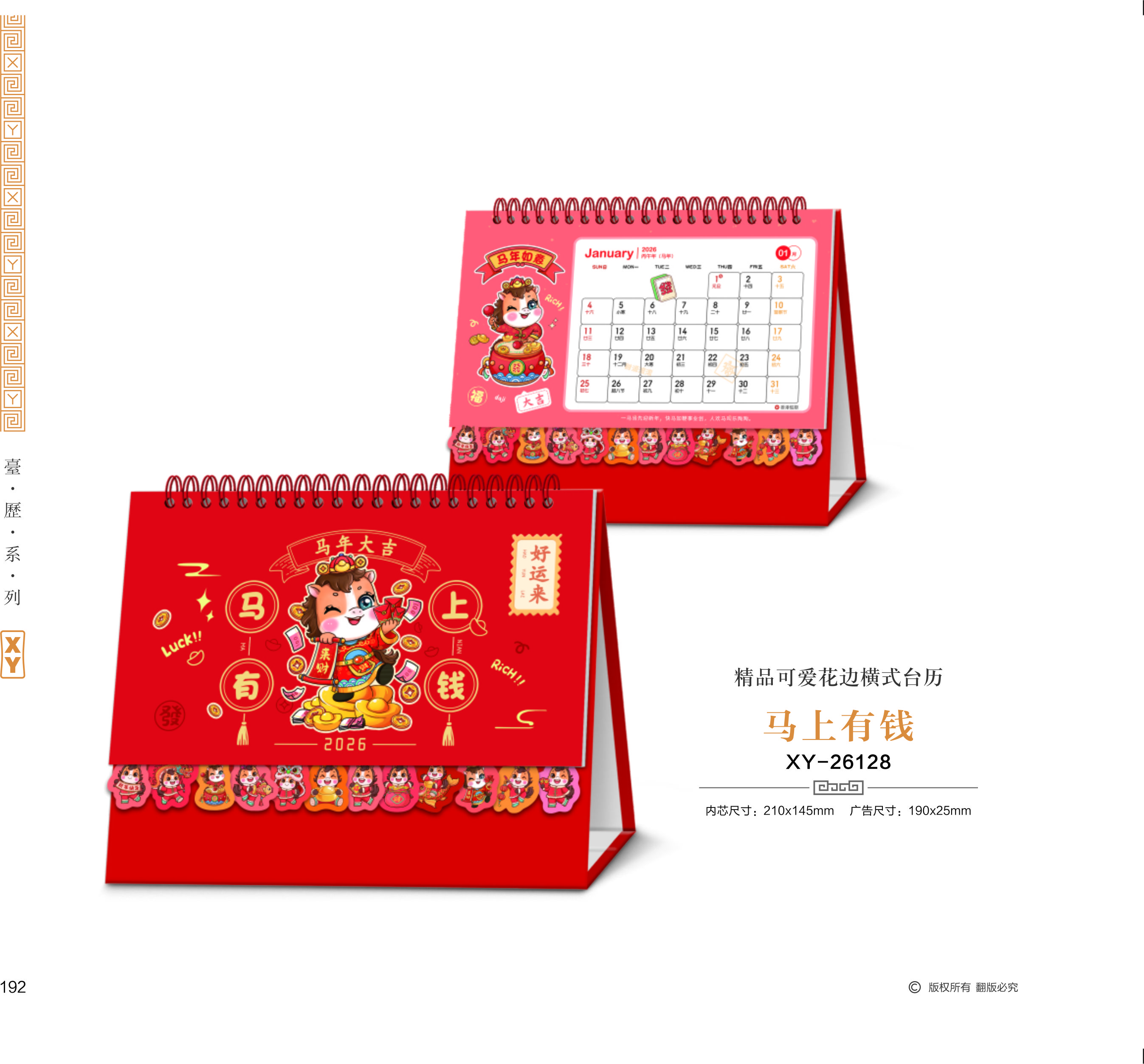 精品可愛花邊橫式臺(tái)歷-馬上有錢