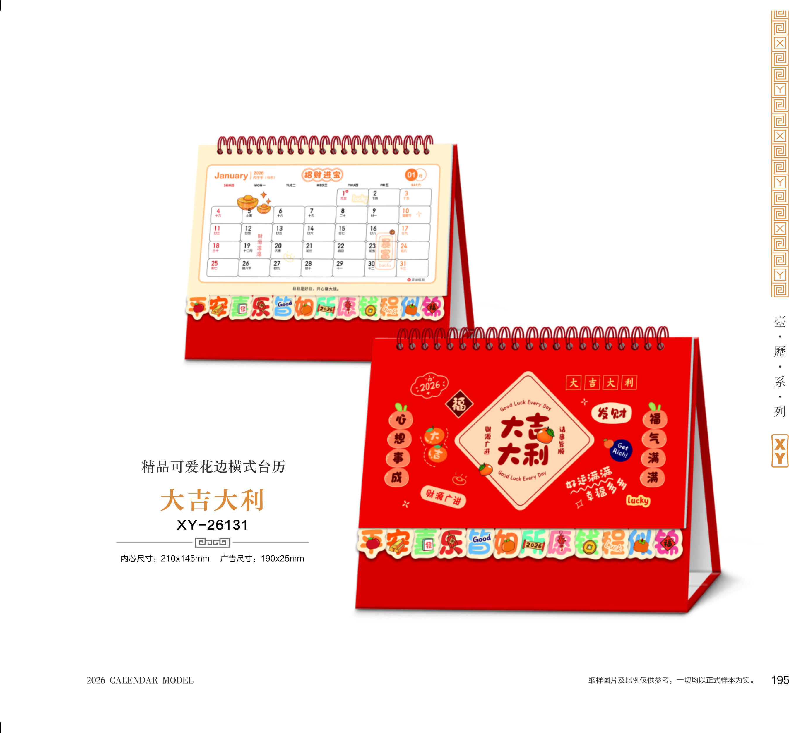 精品可愛花邊橫式臺歷-大吉大利