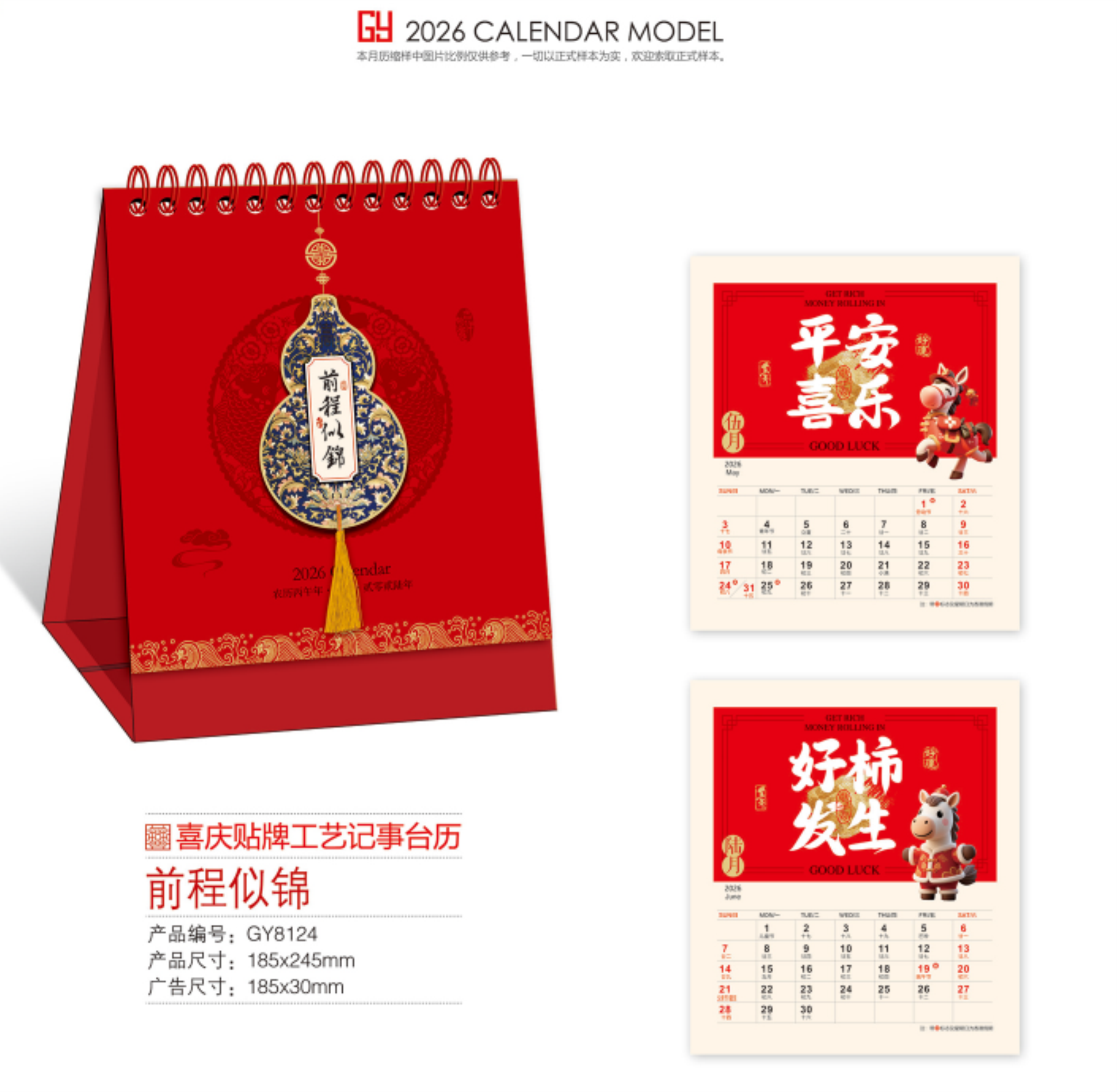圖案:喜慶貼牌工藝記事臺歷-前程似錦