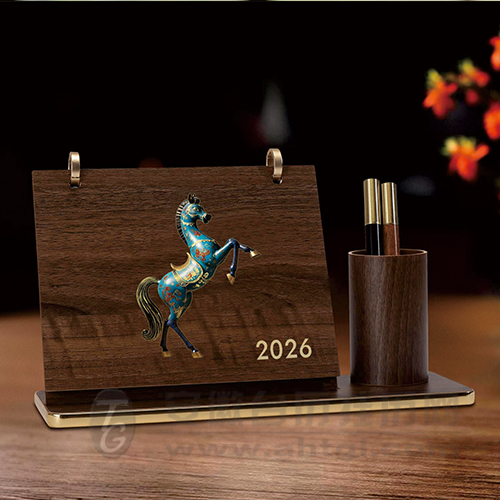 名稱:木質(zhì)筆筒臺歷-馬躍新程…