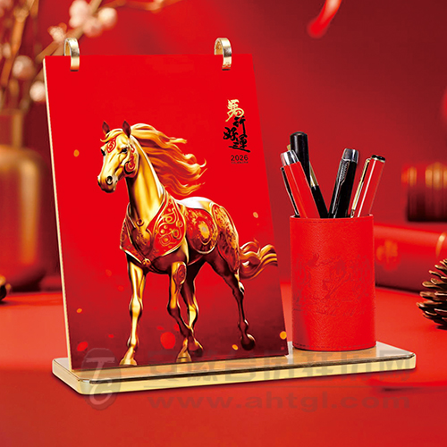 名稱:皮質(zhì)筆筒木藝臺歷-金馬…